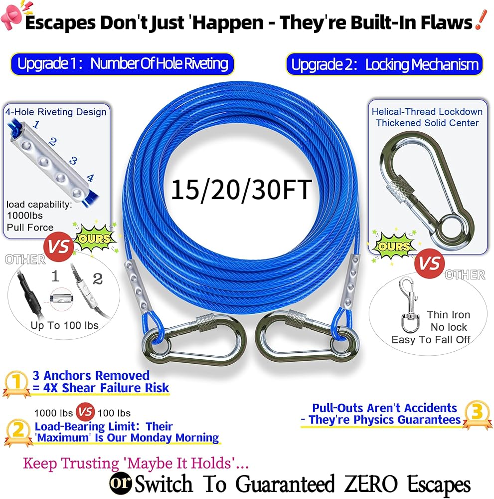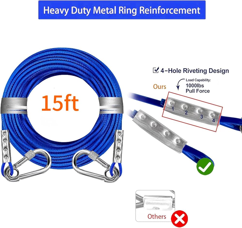 30 قدمًا من الكابل الكلب: قمنا بترقية التوتر على كابل 30 قدمًا ، وترقية مقاطع الحديد المكسورة بسهولة إلى مقاطع مواد من الفولاذ المقاوم للصدأ لما يصل إلى 150 رطلاً من الكلاب XL واختبارات على أرضية مستقرة ومقاطع مواد مصنوعة من الفولاذ المقاوم للصدأ لأقوى النهايات ، ترقية carabiners العادية إلى الأقفال المسمار ، يقلل باب المسمار اليدوي من إمكانية هروب الحيوانات الأليفة. تجرب الحيوانات الأليفة!