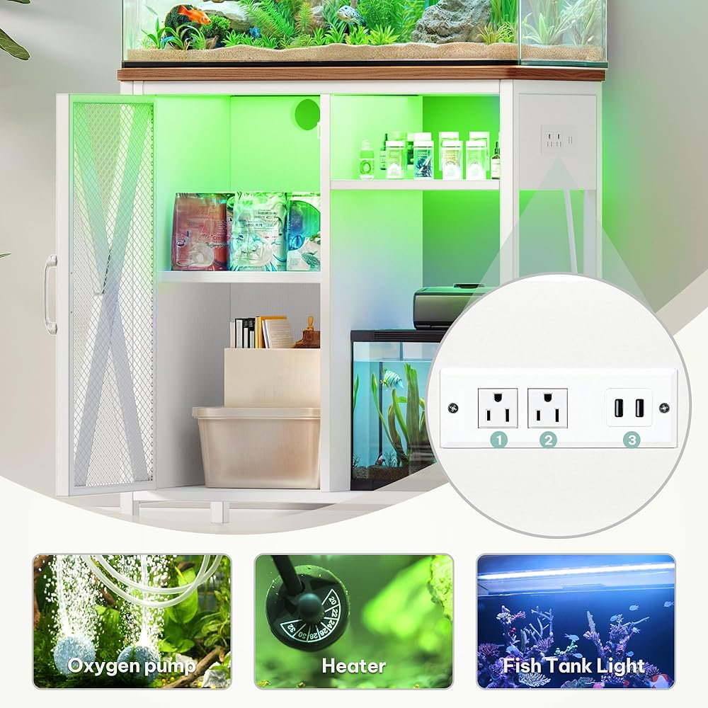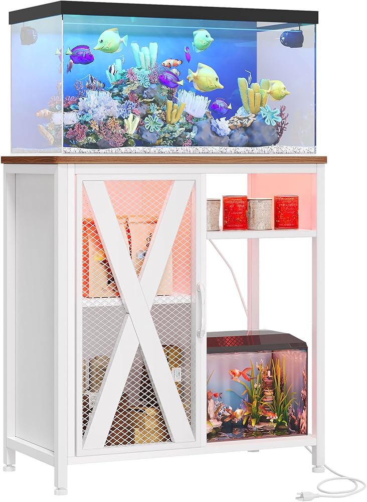 • تصميم ثنائي الأغراض: قم بتحسين المساحة مع موقفنا الذي يستوعب خزان 20-29 جالون في الأعلى ومجموعات خزان الأسماك في الأسفل. تنظيم أساسيات دون عناء في الخزانة المدمجة مع أرفف قابلة للتعديل