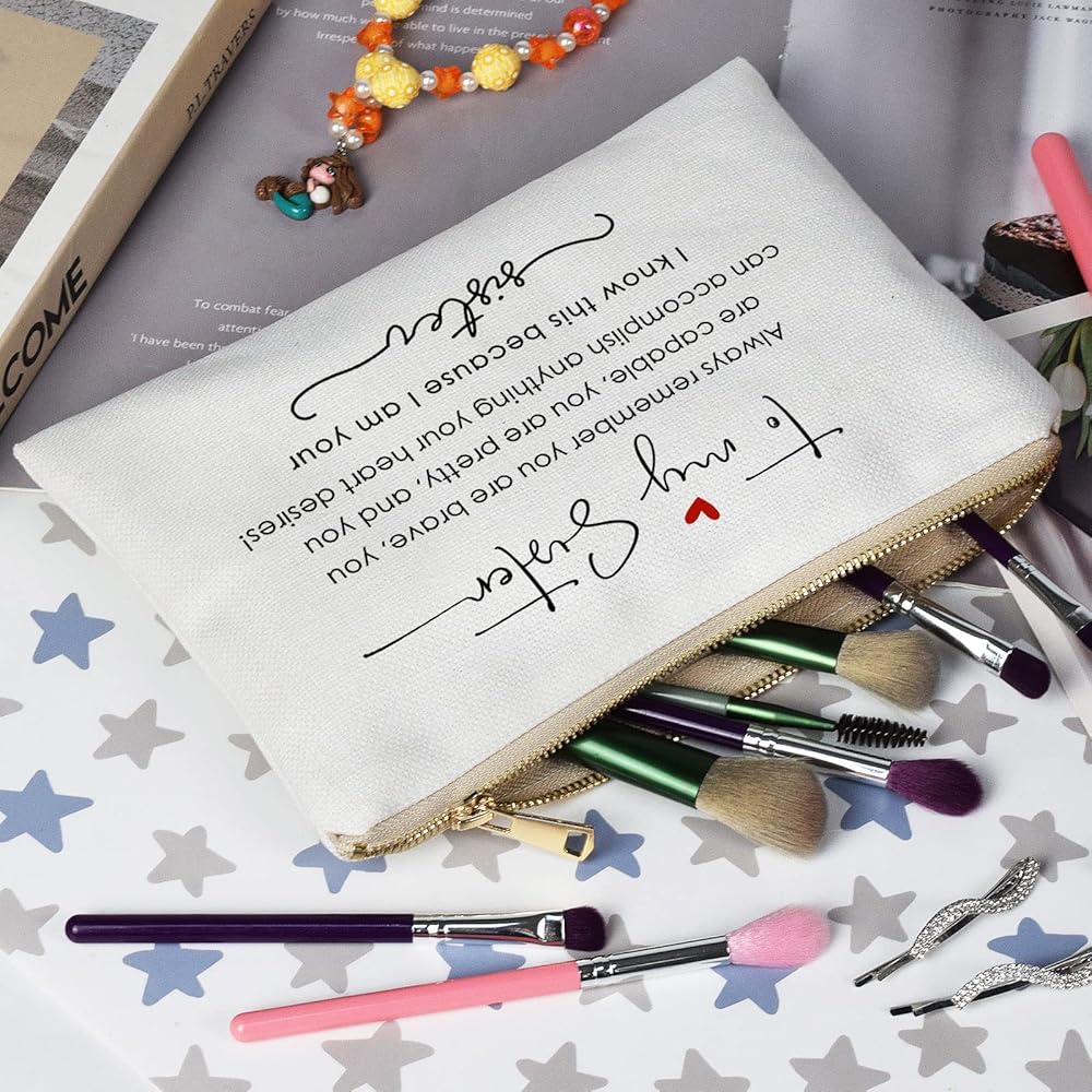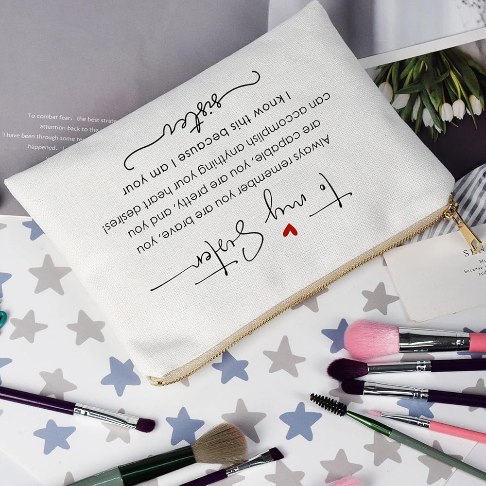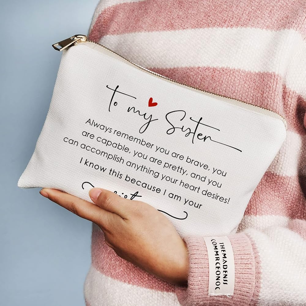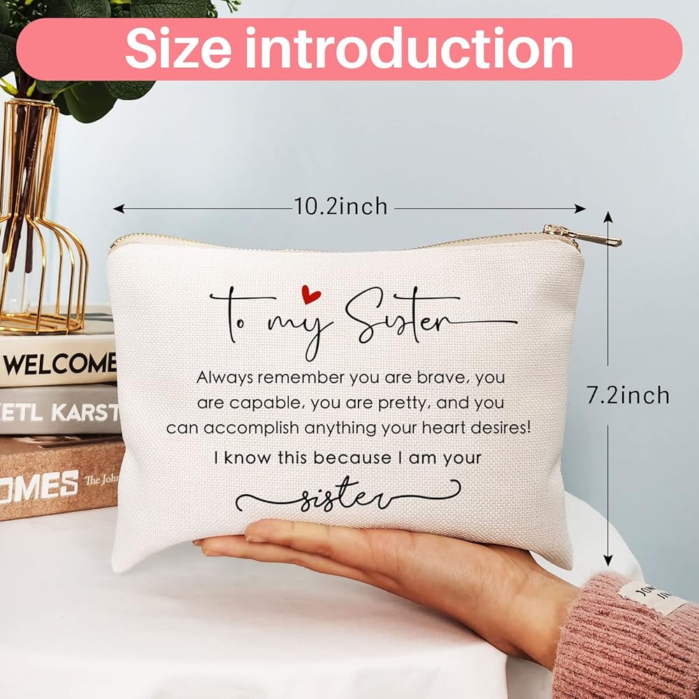 Celebrate the bravery of your sister with our "Always Remember You Are Brave" Makeup Bag! Made from sustainable linen cotton fabric, this eco-friendly choice reflects your values. The golden brass zipper adds an elegant touch to the design, making it a stylish accessory she'll adore. Stand out with the eye-catching thermal transfer print, setting this bag apart from the rest. With its perfect size, measuring 10.2 x 7.2 inches, it's ideal for storing all her beauty essentials on-the-go. Not just for makeup, it's a versatile pouch for stationery, personal hygiene products, and more. Give your sister the perfect birthday gift and let her know how much she means to you.