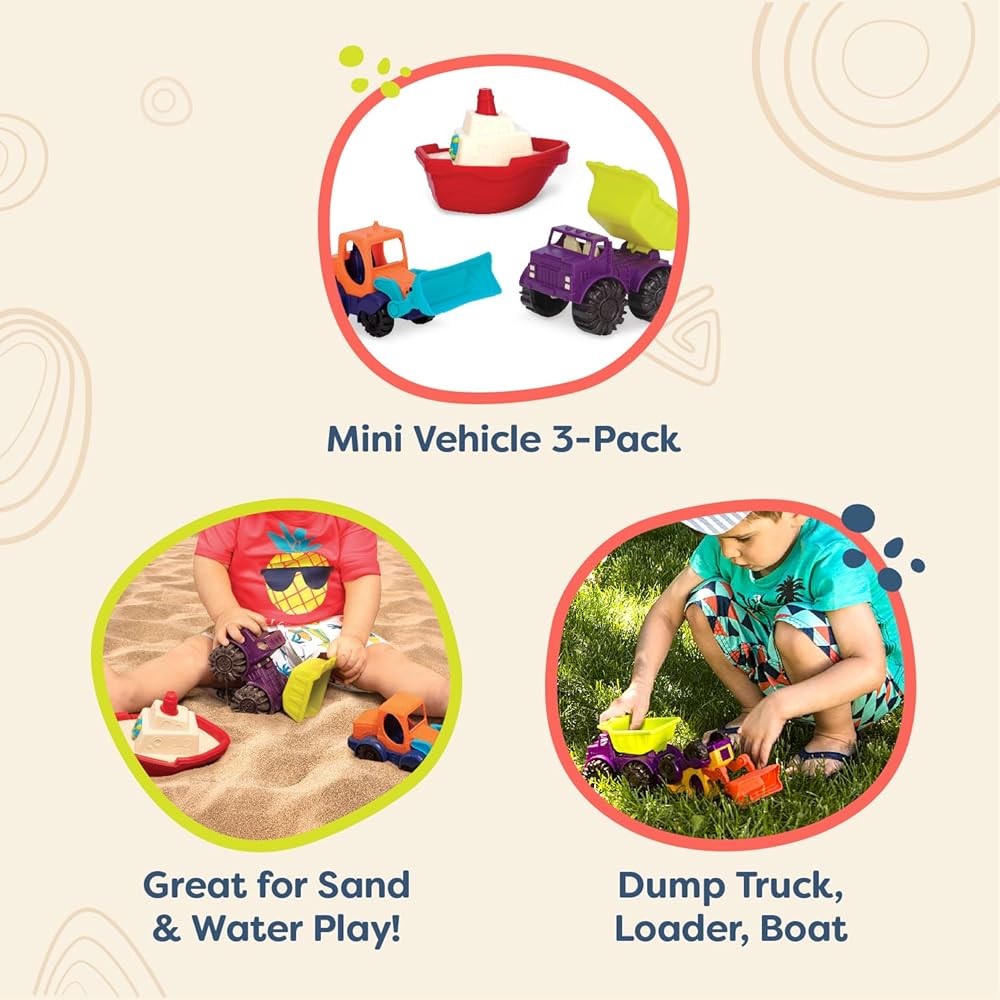B. Toys- 3 Mini Toy Cars - Water & Sand Meaticles Beachet للأطفال 18 شهرًا+