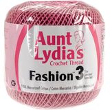 Aunt Lydia's Fashion Crochet Cotton is a premium crochet thread soft and lustrous with a soft hand. Suitable for fashion apparel and accessories. Thread is size 3 one hundred percent mercerized cotton. solid colors are 150 yards and metallic colors are 100 yards. Made in India.