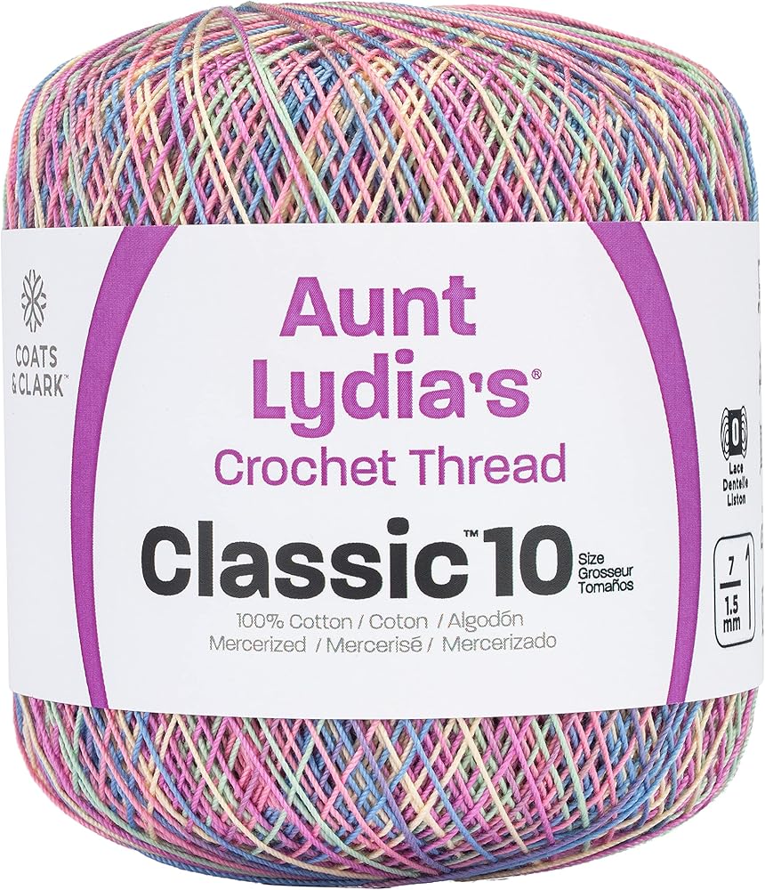 This high luster mercerized cotton crochet thread is perfect for crochet projects both large and small. This thread is available in a wide range of fashion solids, neutral basics and alluring multi-colors that are ideal for home decorating and fashion projects. Article 154 is a size 10, bedspread weight, 3ply 100% mercerized cotton thread. Navy and Ecru: 400yd/365.75m, Solids: 350yd/320m and Shaded Colors: 300yd/274.3. Size 7/1.5mm crochet hook is recommended. Care: machine wash (max.temp. 104F/40C), dry flat, do not bleach, do not dry clean, OK to iron