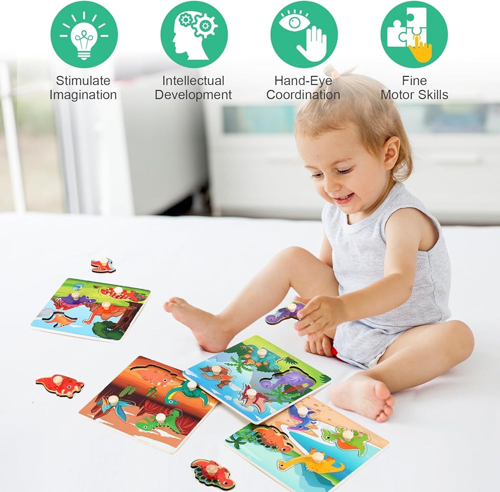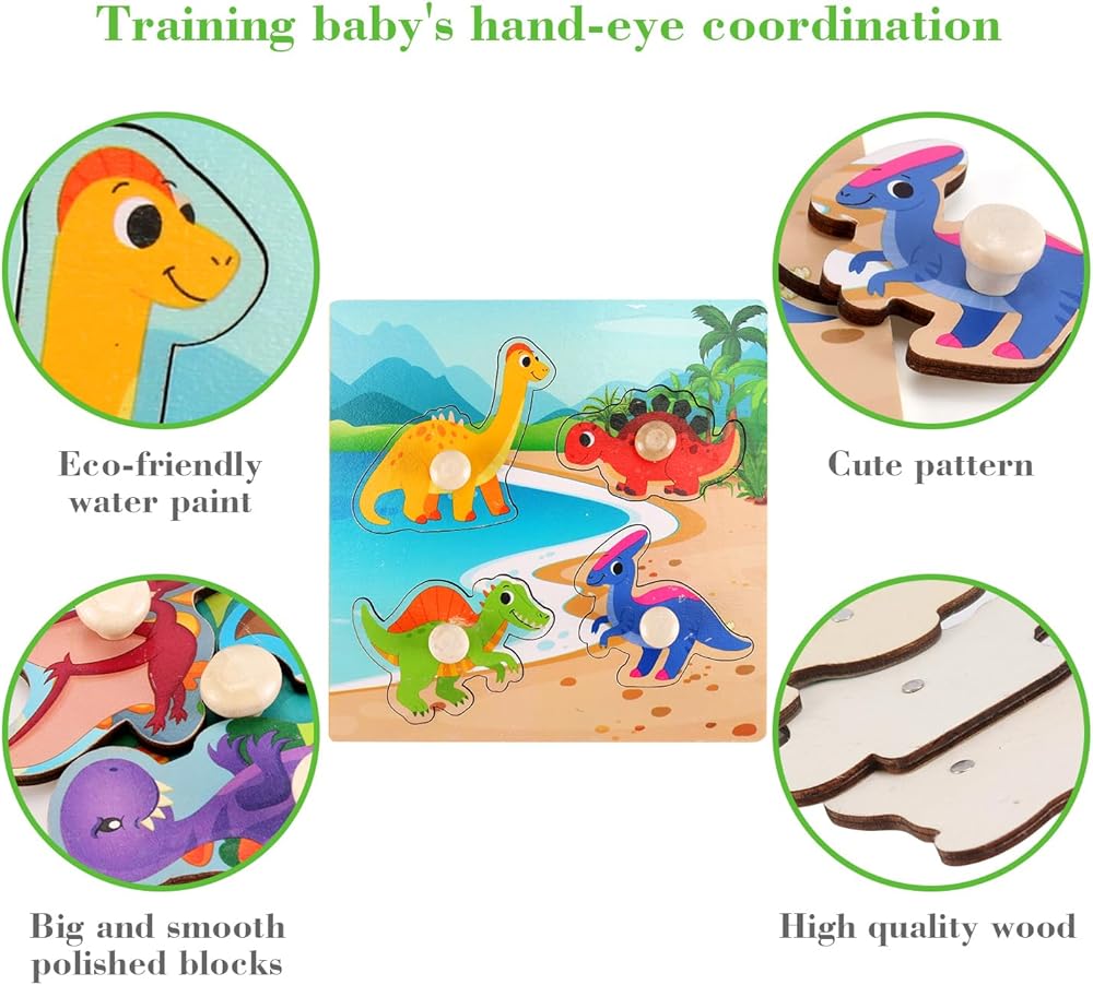 مجموعة تعليمية شاملة: توفر مجموعة Peg Buzzles الخشبية أربعة ألغاز مختلفة ، تتميز بلغاز المزرعة ، ولغز الفاكهة ، ولغز الديناصورات ، ولغز الحيوانات البحرية. هذه المجموعة مثالية لتقديم طفلك إلى المفاهيم الأساسية وتعزيز مهارات التعلم المبكر!