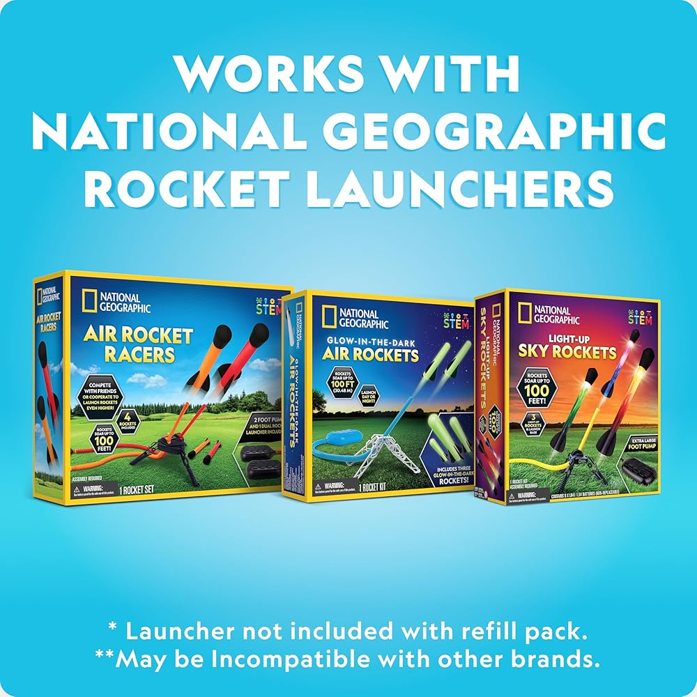 ترتفع الصواريخ إلى 100 قدم-قفز على مضخة القدم جدًا على قاذفة الصواريخ لعبة الأطفال وأرسل روكيتس طيران عالياً! هذه إضافة رائعة إلى مجموعتك من الألعاب الخارجية والألعاب الخارجية! هذه لعبة الأطفال لا تنسى!