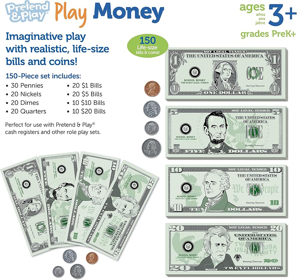 موارد التعلم Pray Play Money - 150 قطعة ، تتراوح أعمارهم بين 3+ تلعب المال للأطفال ، والتظاهر بالمال للأطفال ، ولعب الأموال ، والمال ولعب ألعاب اللعب المصرفية ، ولعب الأطفال الصغار