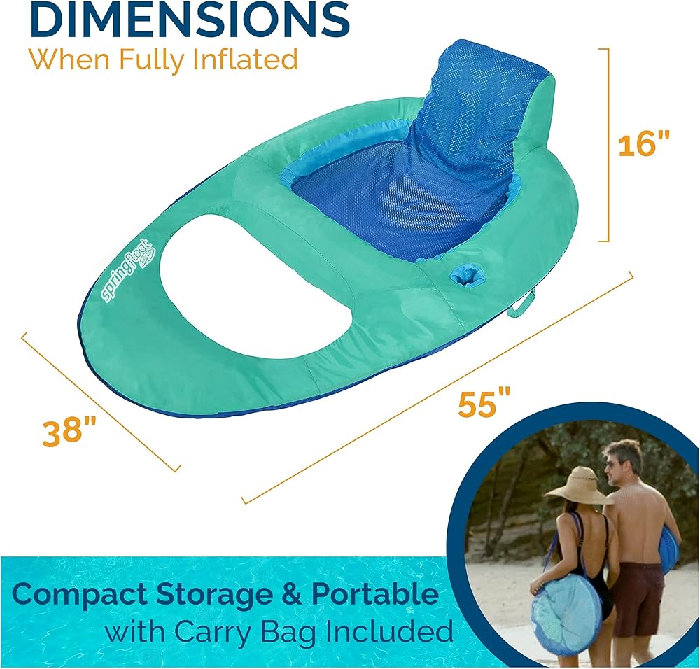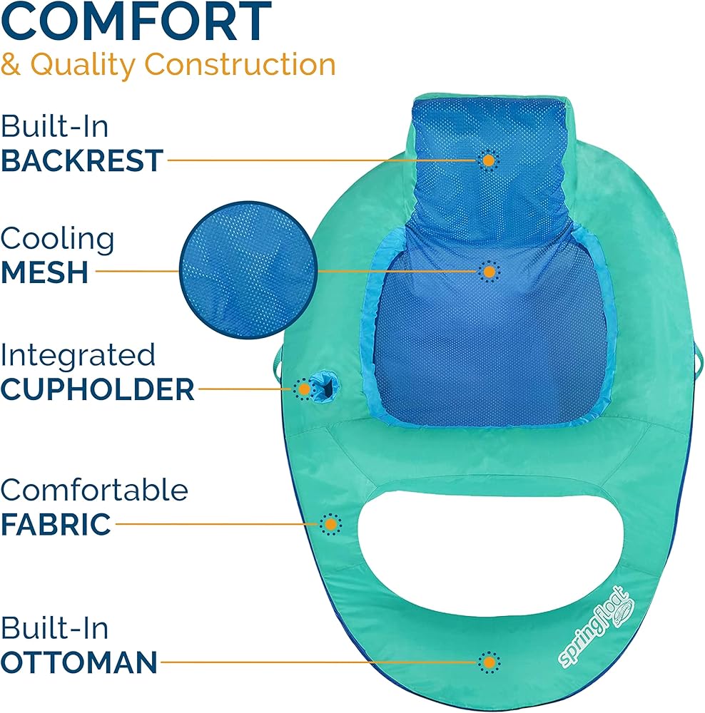 • الراحة المطلقة: استلقي في مقعد الشبكة ومسند رأس متكامل ، مسند الظهر ، ومسند القدمين ويطفو على الاسترخاء ؛ يعلق الكرسي الجزء السفلي من سطح الجسم أسفل سطح الماء ويتضمن حامل كوب مدمج للحفاظ على مشروبك عن قرب