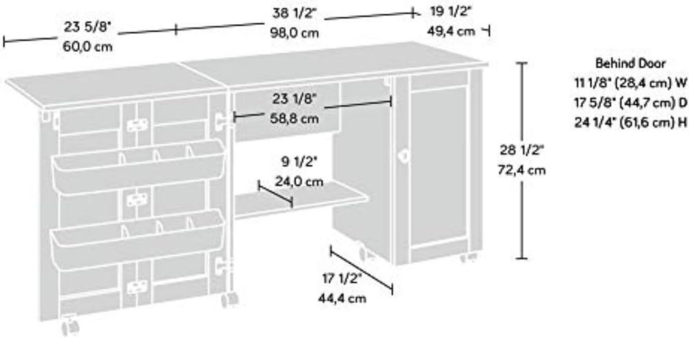 - يتضمن التخزين خلف باب Roll-Open صناديق التخزين والرف الخفي لآلة الخياطة