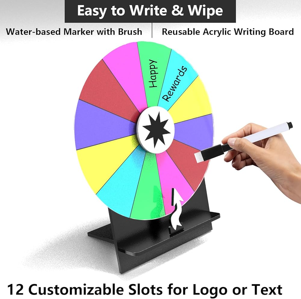 تجربة اللعبة المثيرة: تتميز عجلة الجائزة بطولات 8 جائزة ملونة ، مما يتيح لك تخصيص خيارات الجائزة وتغييرها بسهولة باستخدام علامة مسح الجافة المضمّنة.