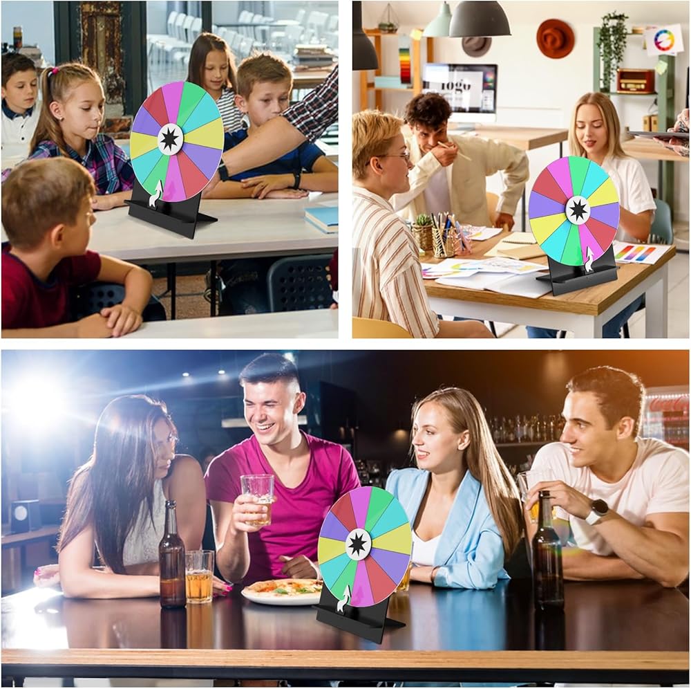 التصميم متعدد الاستخدامات: عجلة غزل العجلات التي تبلغ قيمتها 6 بوصات هي مثالية لمجموعة متنوعة من الأحداث ، بما في ذلك المعارض التجارية ، والكرنفالات ، وجمع التبرعات ، وأحداث الشركة. من خلال فتحاتها الثمانية وألوانها النابضة بالحياة ، من المؤكد أن هذا الدوار الروليت على الطاولة يجذب الانتباه وإشراك المشاركين.