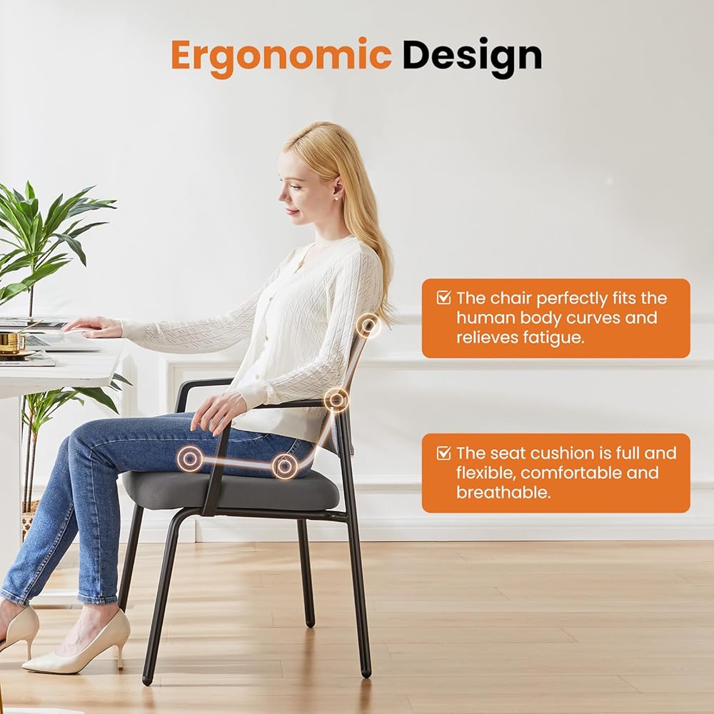 الراحة الممتازة - تتكون وسادة المقعد لهذا الكرسي القابل للتكديس من نسيج عالي الكثافة يوفر مرونة جيدة ومتانة ، وليست عرضة للهالة أو تتلاشى مع الاستخدام المطول. مسند الظهر لكرسي الضيف مصنوع من مواد شبكية قابلة للتنفس ، مع هيكل شبكة غرامة يوفر دعمًا جيدًا ويحافظ على قابلية التنفس الجيدة ، مما يترك ظهرك يشعر بالراحة والراحة.
