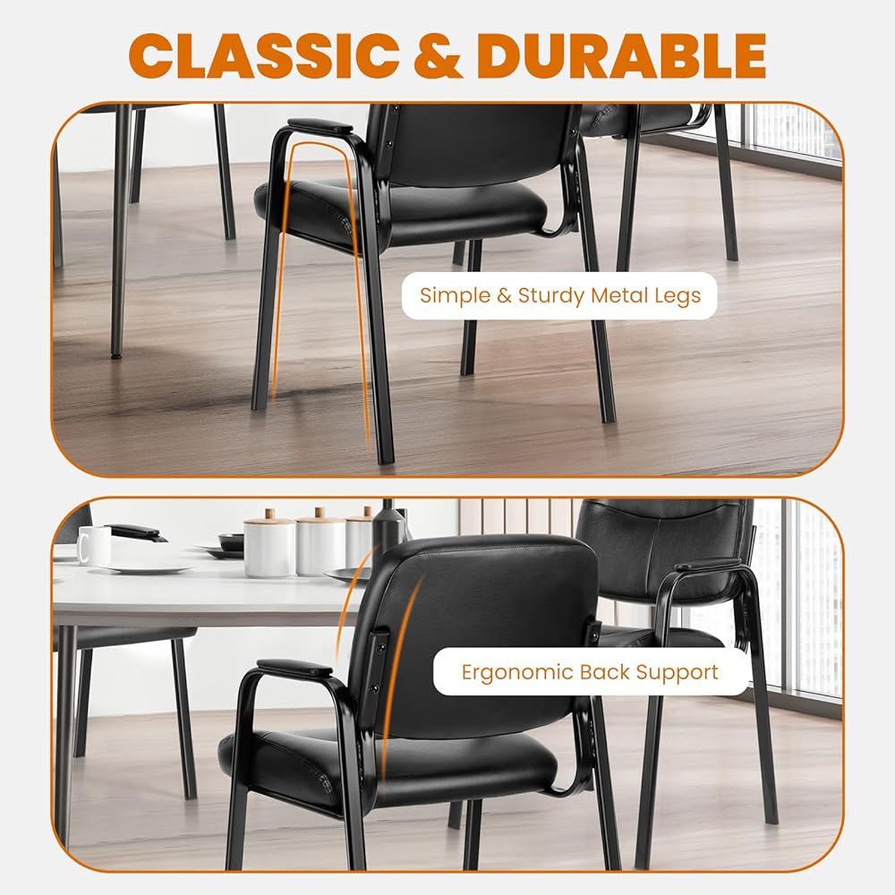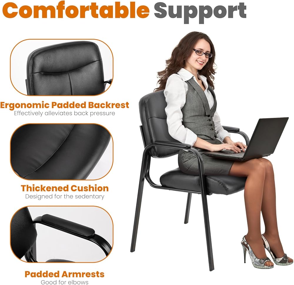 【Stable & Durable 】The black leather chair has a wheel-less design, ideal for students and workers who need to focus and seniors. Metal legs and sturdy construction give this office guest chair a balanced center of gravity and a capacity of 300 lbs