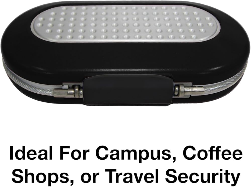 Secure small safe to a fixed object with cable; Portable safe is best used to protect smart phones, passports, cash, and credit cards