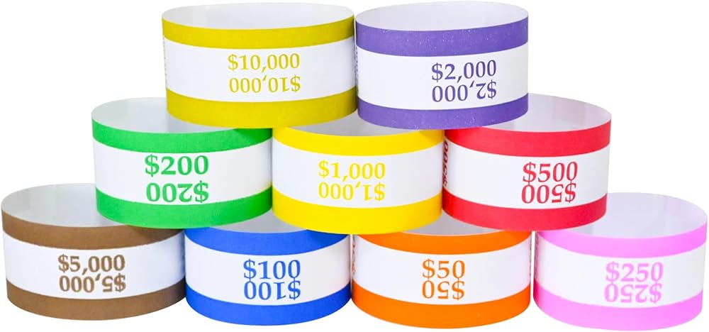 مريح وسريع: يقع الشريط اللاصق الذاتي في نهاية كل ورقة تغليف النقود الورقية ، والتي يمكن أن تربط النقود الورقية بسهولة. استخدم ضمادات العملة هذه للحفاظ على فواتيرك أنيقة ومنظمة. يمكن أن يربط الشريط الذاتي اللصق على الشريط بسرعة الأوراق النقدية ، واللون السهل المعترف به مثالي للفوترة السريعة