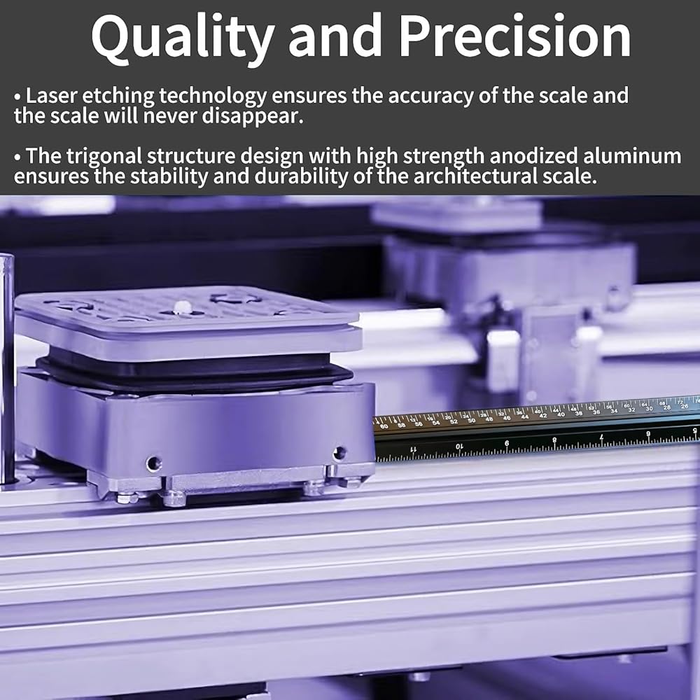 7 【حاكم هندسي قوي ودائم مع بنية ثلاثية ، قوية للغاية ومستقرة ، لا تشوه ، لا يتلاشى ، مقياس مهندس من الألومنيوم 12 "، بدون صدأ ، مقاومة للتآكل ، وجودة سهلة التنظيف ومستقرة ودائمة.