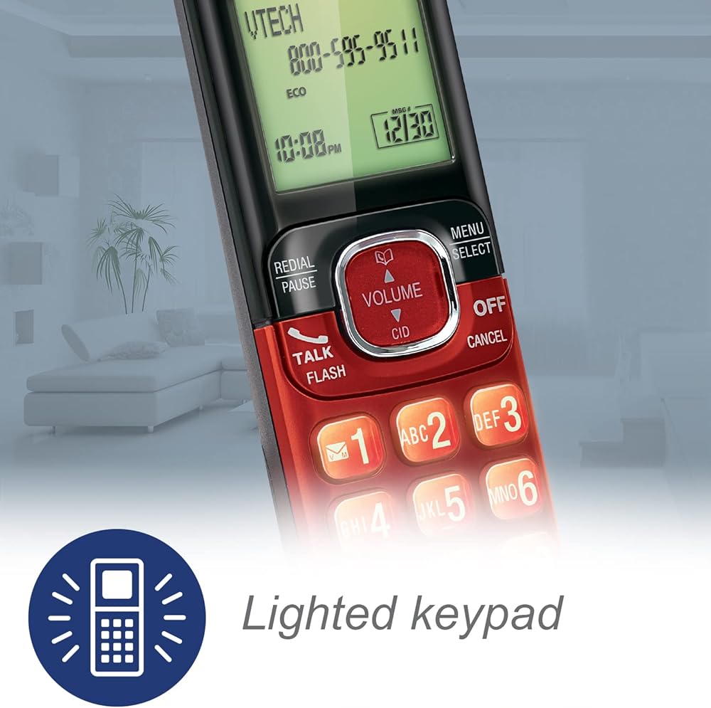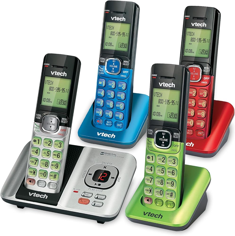 VTech CS6529-4B 4-HA-HAYPER DECT 6.0 اللاسلكي مع نظام الرد على العناية ومعرف المتصل ، قابلة للتوسيع حتى 5 أجهزة ، قابلة للتجربة على الحائط ، الأزرق/الأخضر/الأحمر/الفضة