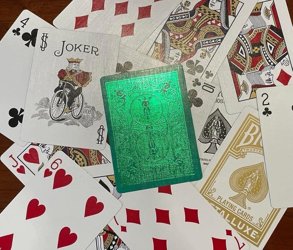 البطاقات المصممة خصيصًا: تنغمس في روعة هذه الطوابق بتصميمها المعروف على الفور ، المرتفع الآن مع ظهور رقائق غنية من أجل التألق الاستثنائي. إن التطبيق الفريد المختوم من FOIL المعدني مغطى بخبرة مع الانتهاء من الملكية الخاصة بنا ، مما يضمن شعورًا متميزًا مع كل خلط ورق اللعب على تكنولوجيا وسادة الهواء.