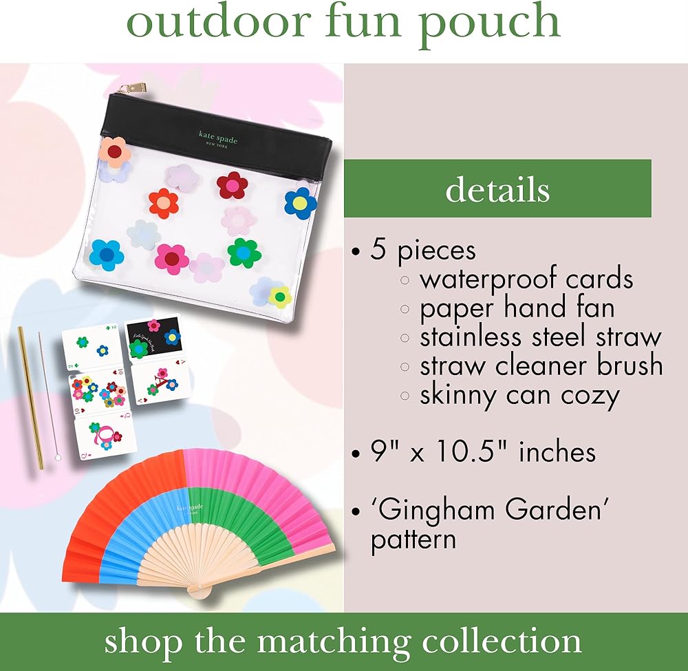 كيت سبيد نيويورك في الهواء الطلق في الهواء الطلق مع حقيبة واضحة ، ورقوب اللعب المقاومة للماء ، ومروحة الورق ، قش الفولاذ المقاوم للصدأ ، أنظف ، غينغهام حديقة