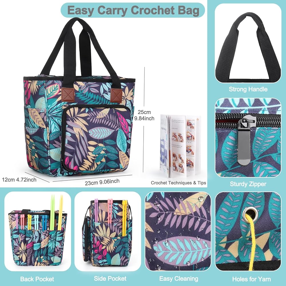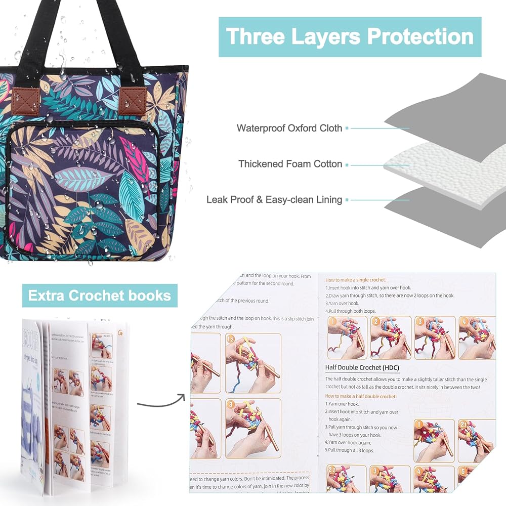 • كيس الكروشيه مع كتب الكروشيه المبتدئين: منظم تخزين الغزل هذا مصنوع من نسيج أوكسفورد 600D المتين والقوي ، لذلك يحمل الأحمال ، مقاومة للماء ، سهلة التنظيف. تأتي حقيبة حمل الكروشيه الخاصة بنا مع تعليمات ، ويتم تخصيص تعليمات مفصلة سهلة المتابعة للمبتدئين الكاملين ، وتشمل تقنيات الكروشيه الأساسية ، مما يساعد كروشيه المبتدئين في مهارة الكروشيه بسرعة.