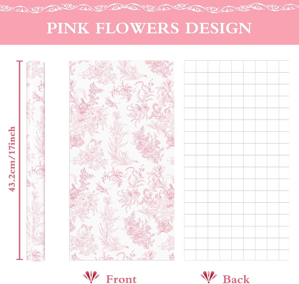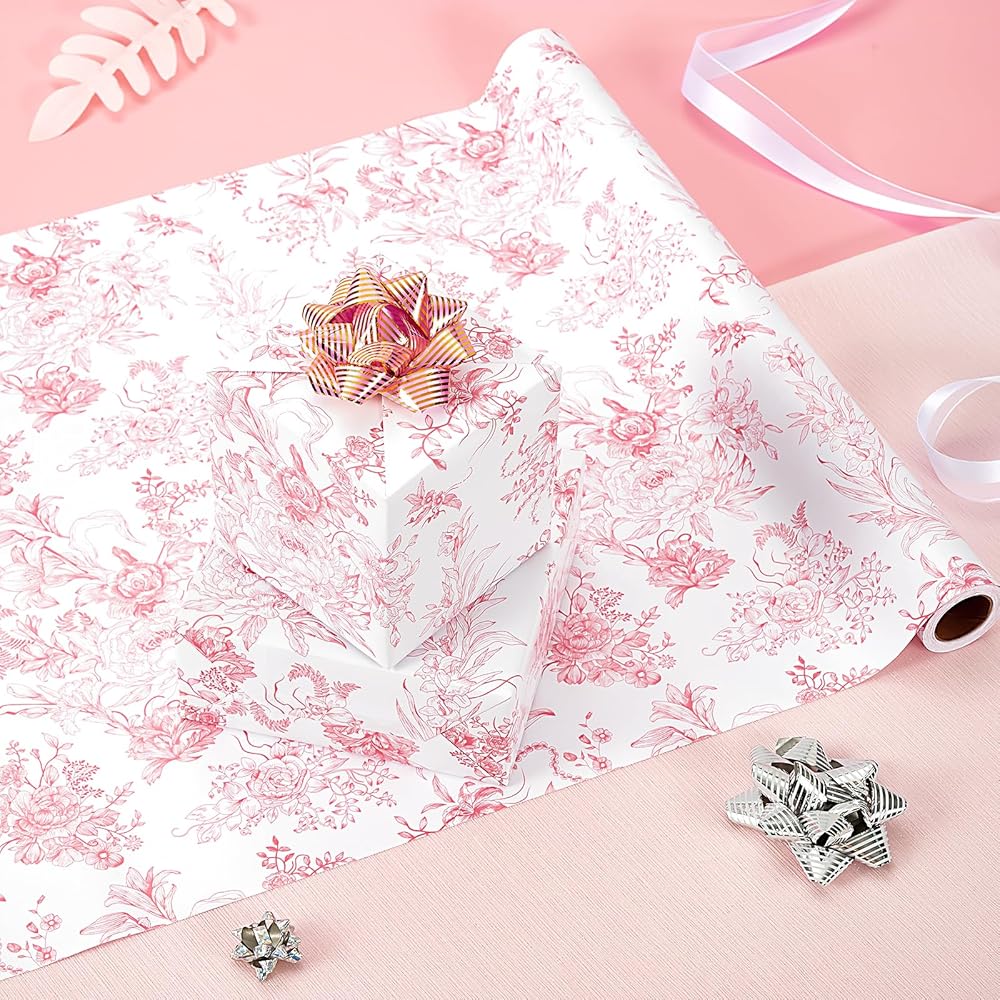 Wernnsai Flower Gift Paper Roll -Roll - 1 Roll 17 "× 33 FT Bouquet ورقة تغليف الوردي الوردي لورقة الزهور للبنات