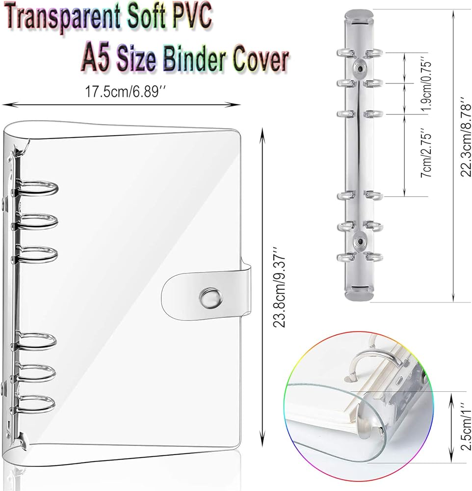 • 【ستحصل على】 2 PCS Premium Premium Premium Prosprent Proseance PVC Notebook Binder ، 6 Round Ring Binder مناسب لجميع الصفحات الداخلية القياسية A5.