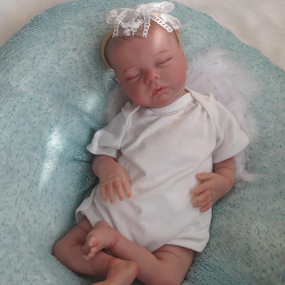 دمى الأطفال المولودة من جديد ديليلا مع عروق واقعية ، 18 بوصة دمية نوم حديثي الولادة ، دمية نابضة بالفينيل فينيل تولد دمية من جديد مع جسم قماش مرجح ، مجموعة هدايا مطلية مطلية للأطفال 3+