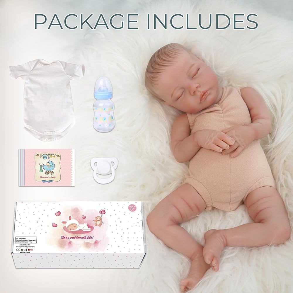 • ꕥ تشمل الحزمة (مع مربع الهدايا): Reborn Doll *1 ، الملابس *1 ، مصاصة *1 ، زجاجة الطفل *1 ، شهادة الميلاد *1