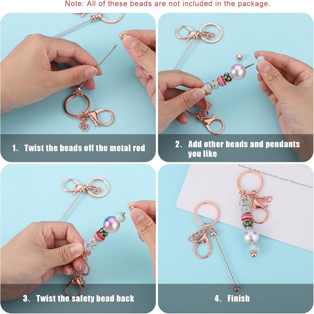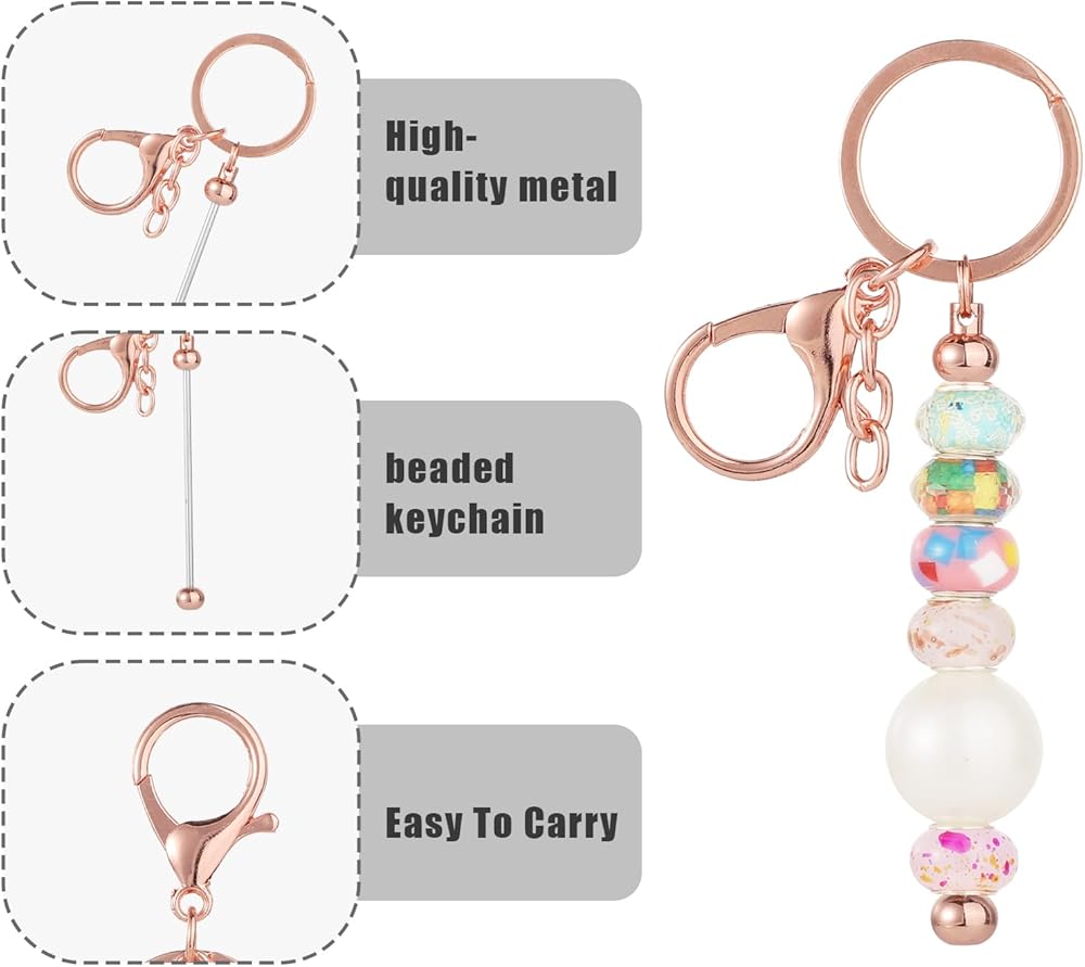 Toymis 8PCS Beadse -keychain bars beadable jode bare bar bar keychain key keychain kit diy keychain chain chain for women men men make make (rose gold)