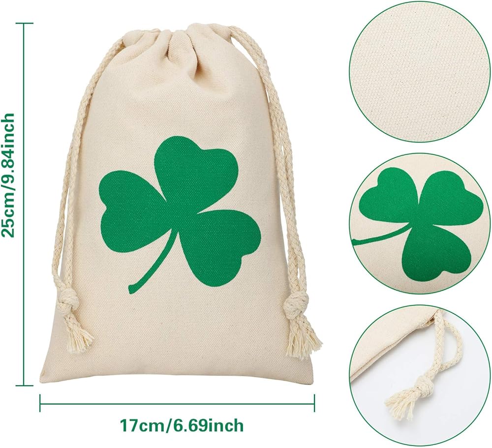 حقيبة شامروك الرباط: تحتوي هذه الحقيبة على تصميم شامروك الأخضر على الجانب الأمامي ، وهي عناصر كلاسيكية لعيد القديس باتريك ، يتيح لك تصميم الرباط فتح الحقيبة وإغلاقها بسهولة ومريحة للغاية للاستخدام ؛ حقيبة شامروك لدينا يقيس تقريبا. 20 × 30 سم/ 7.87 × 11.81 بوصة ، والحجم المناسب لك للاحتفاظ بهذه العملات المعدنية ، أو يمكنك استخدامها لتخزين العناصر الأخرى في الحياة اليومية