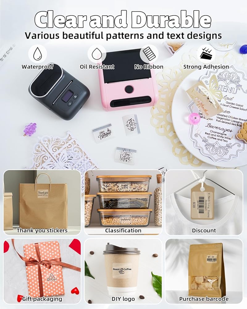 تطبيق واسع: الملصقات الحرارية متعددة الاستخدامات. مثالي لرموز QR ، وعلامات الملابس ، وعلامات المجوهرات ، وعلامات الأسعار ، والباركود ، وشعارات DIY ، وهي مثالية للشركات الصغيرة والتجزئة والحرف اليدوية والمزيد. في الحياة اليومية ، يمكنهم تنظيم الأدوات المنزلية والأدوات ومستلزمات المطبخ. بالإضافة إلى ذلك ، فهي رائعة للمناسبات الخاصة مثل عيد الميلاد وعيد الهالوين ، وصنع ديكورات DIY أو الهدايا الشخصية