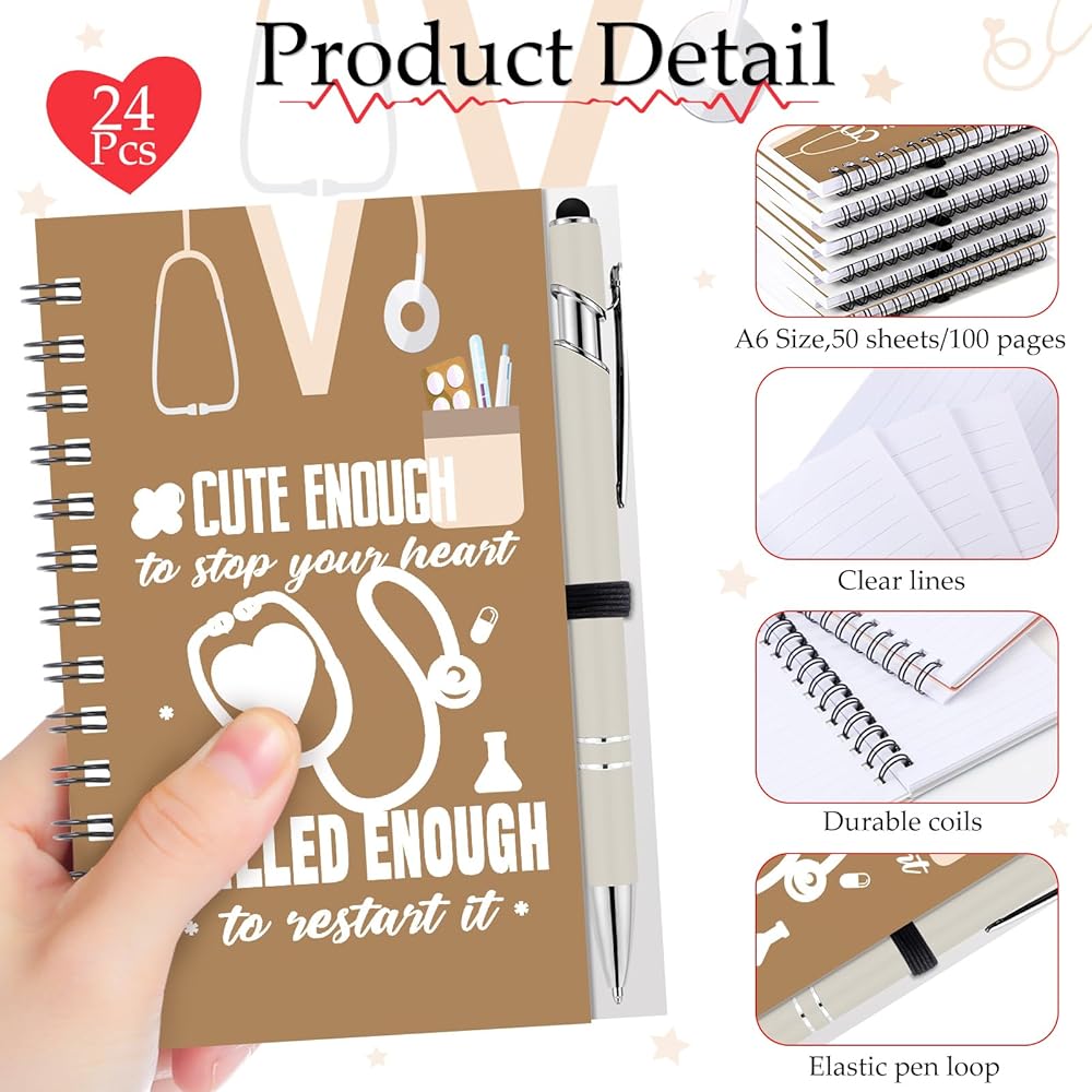 Suitable Size: our nurse notebooks are about 3.94 X 5.51 inches/ 10 x 14 cm, A6 size; The pen is about 5.5 inches/ 13.97 cm long, easy to hold The suitable and portable size allows you to store them in your bag and carry them with you