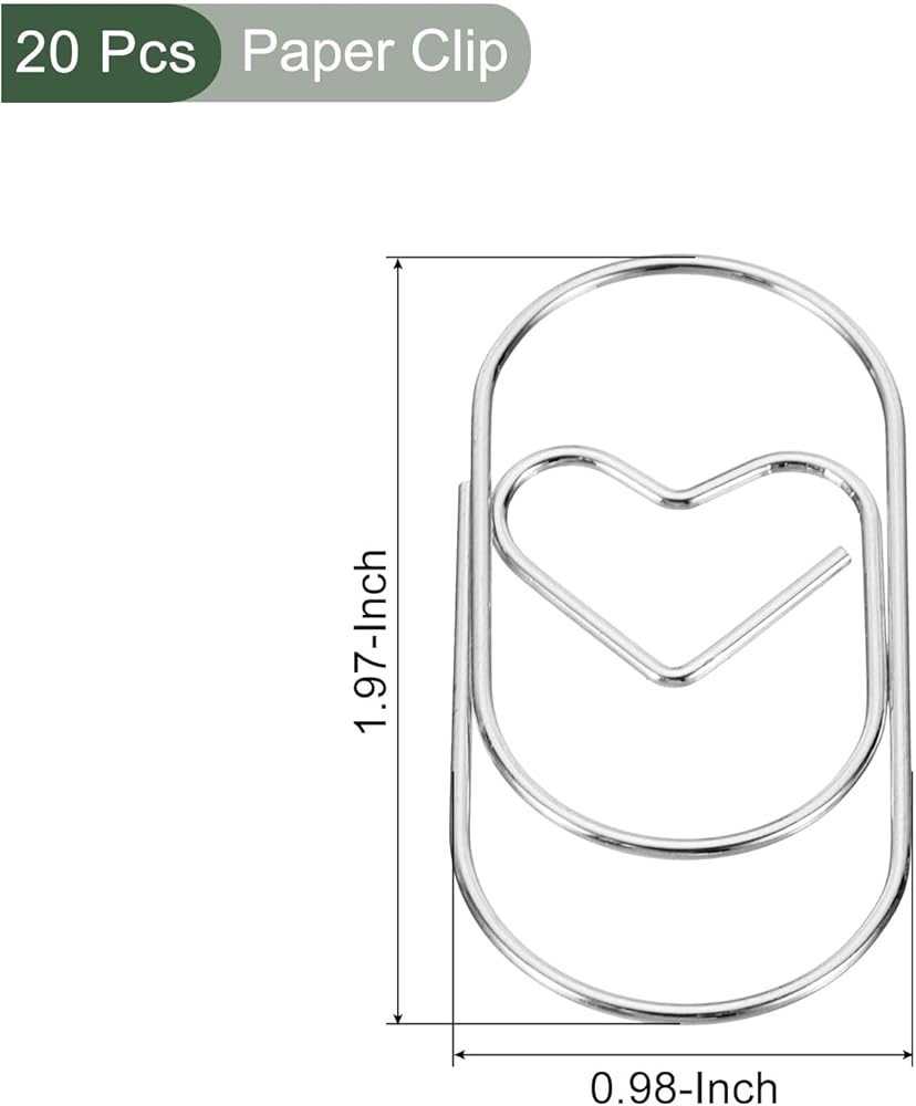 yokive 20 pcs paper clips ، مقاطع على شكل قلب ، حافظ على طاولة أنيقة ، رائعة للمكتب ، الفن ، المنزل ، الاستخدام اليومي (نغمة فضية ، 2 بوصة)
