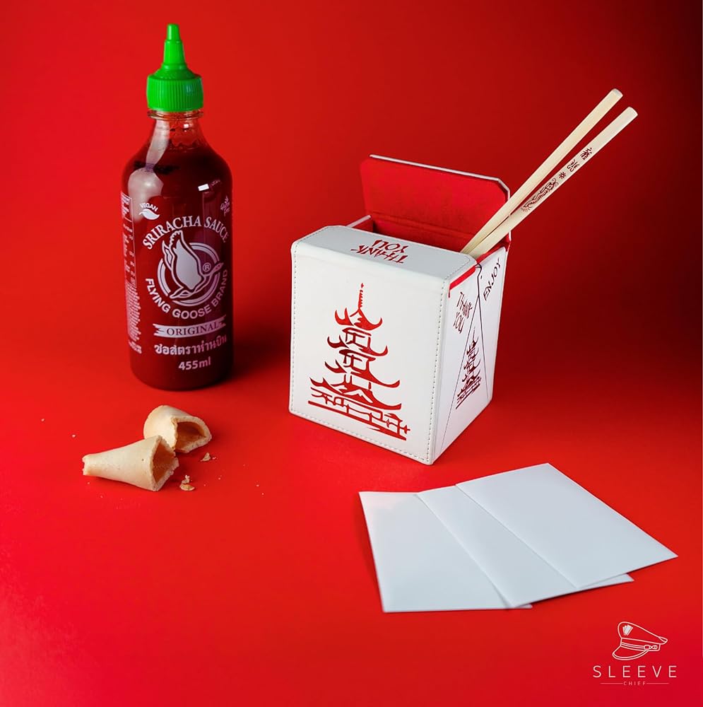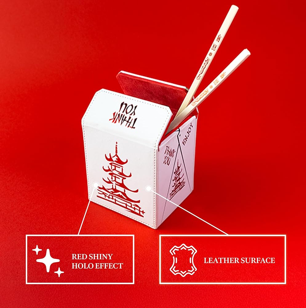 PREMIUM MATERIALS FOR DURABILITY: Crafted with a special white leather exterior and accented with stunning red holo foil elements for a shiny, luxurious deck box mtg.