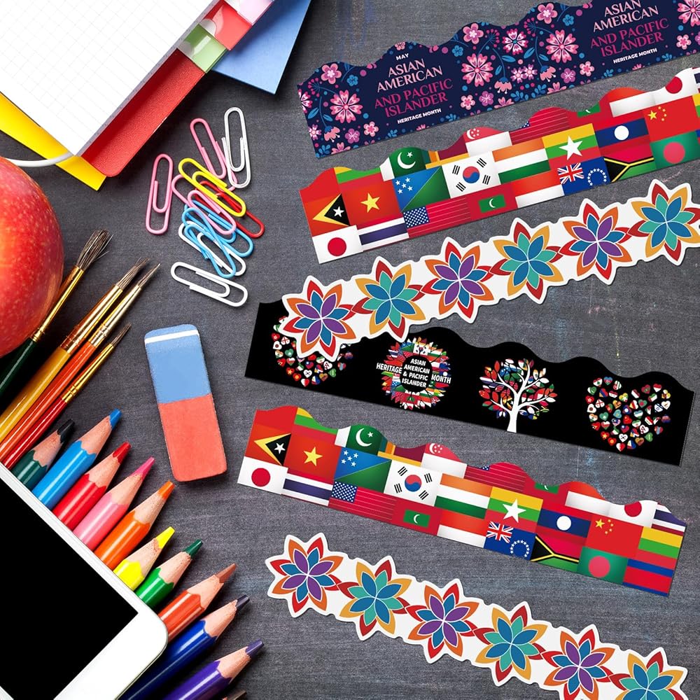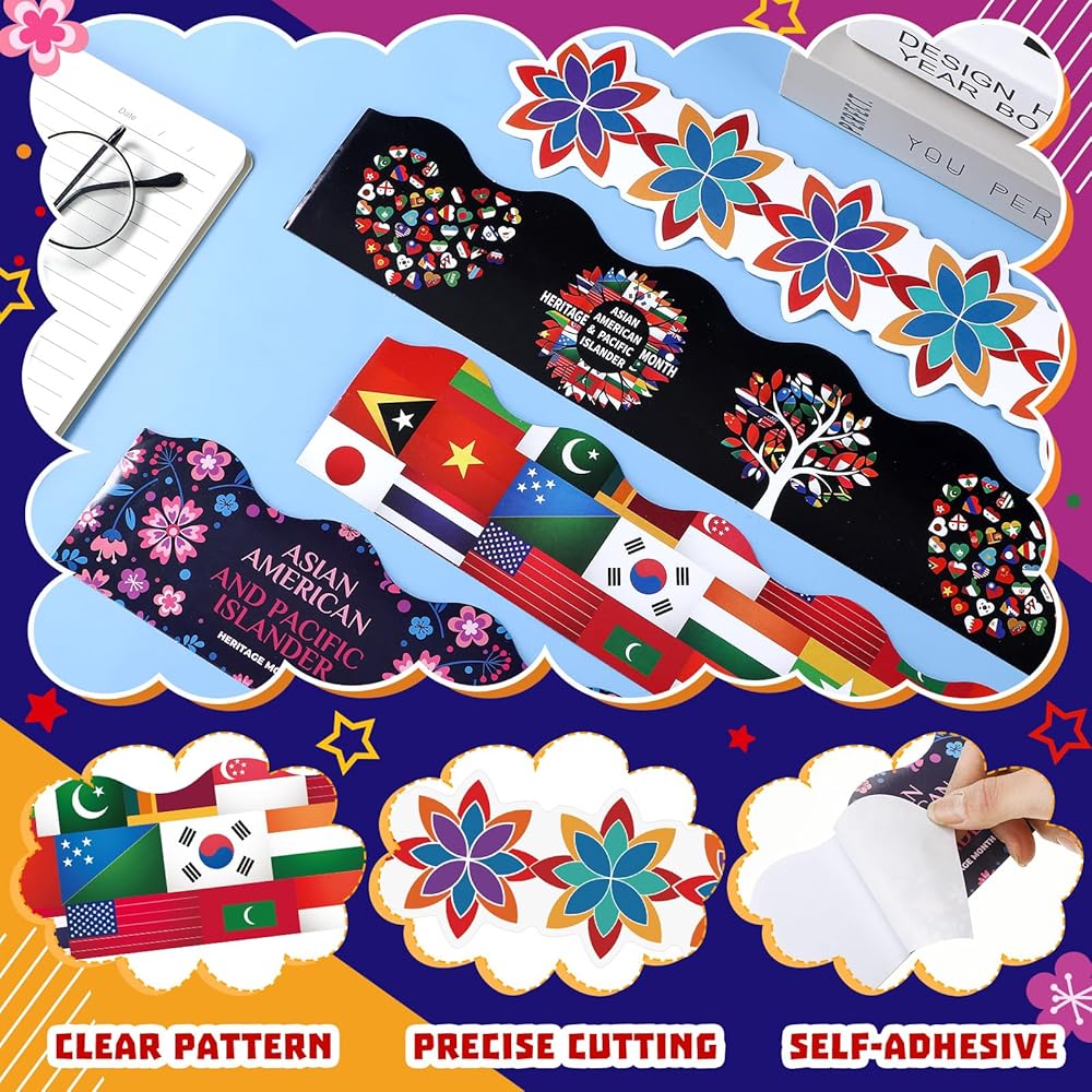 • Visual Attractiveness: bring life to any room with these multicolored Asian American and Pacific Islander heritage month classroom borders; They come in 4 different stylish designs, adding a vibrant touch to your decorations while promoting creativity
