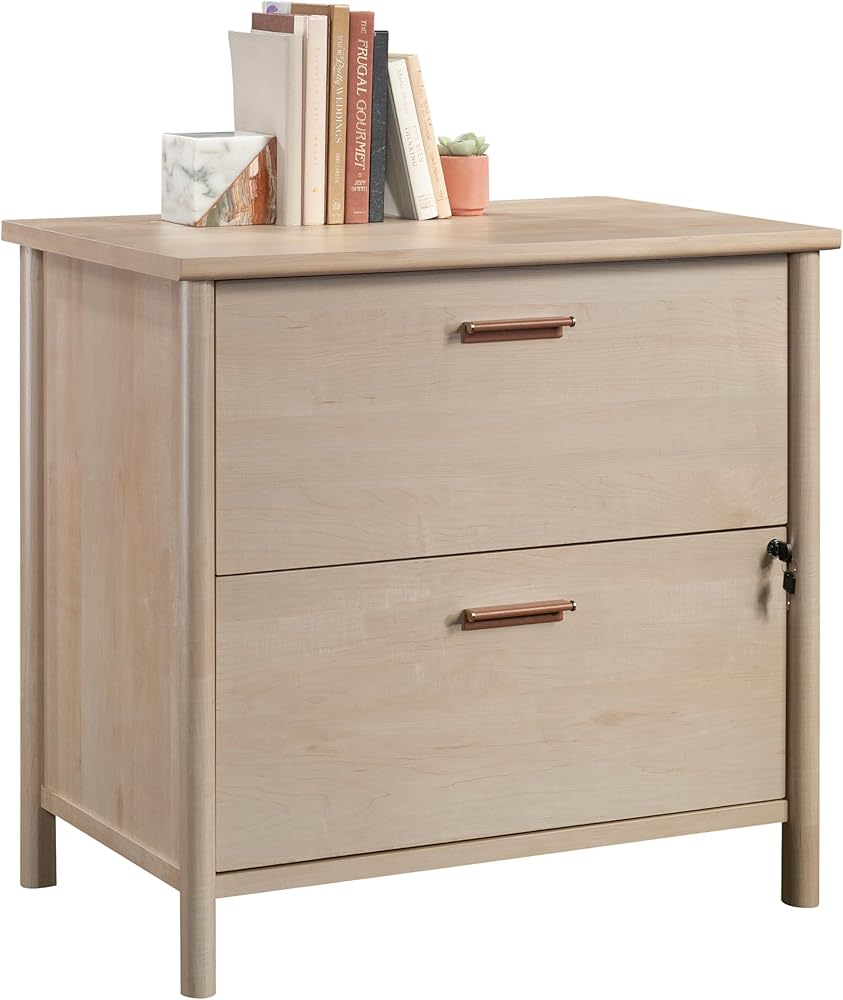 Keep your most important documents organized and easy to find with this 2-drawer lateral file cabinet from the Whitaker Point® collection. This lateral filing cabinet features drawers with full extension slides that hold letter or legal-size hanging files. For your safety, this 2-drawer filing cabinet features an interlocking safety mechanism that allows only one drawer open at a time, preventing tip over accidents. The drawers on this wood lateral file cabinet have a key lock for secure storage of your most important files and documents. A spacious top surface provides space for office supplies and home décor items like decorative plants, a lamp, or photos of your family. Finished on all sides, this legal-size file cabinet will look polished from every angle. For use in the home office, living room, hallway or guest room, this file cabinet in Natural Maple creates the versatile storage you need with the style you love.