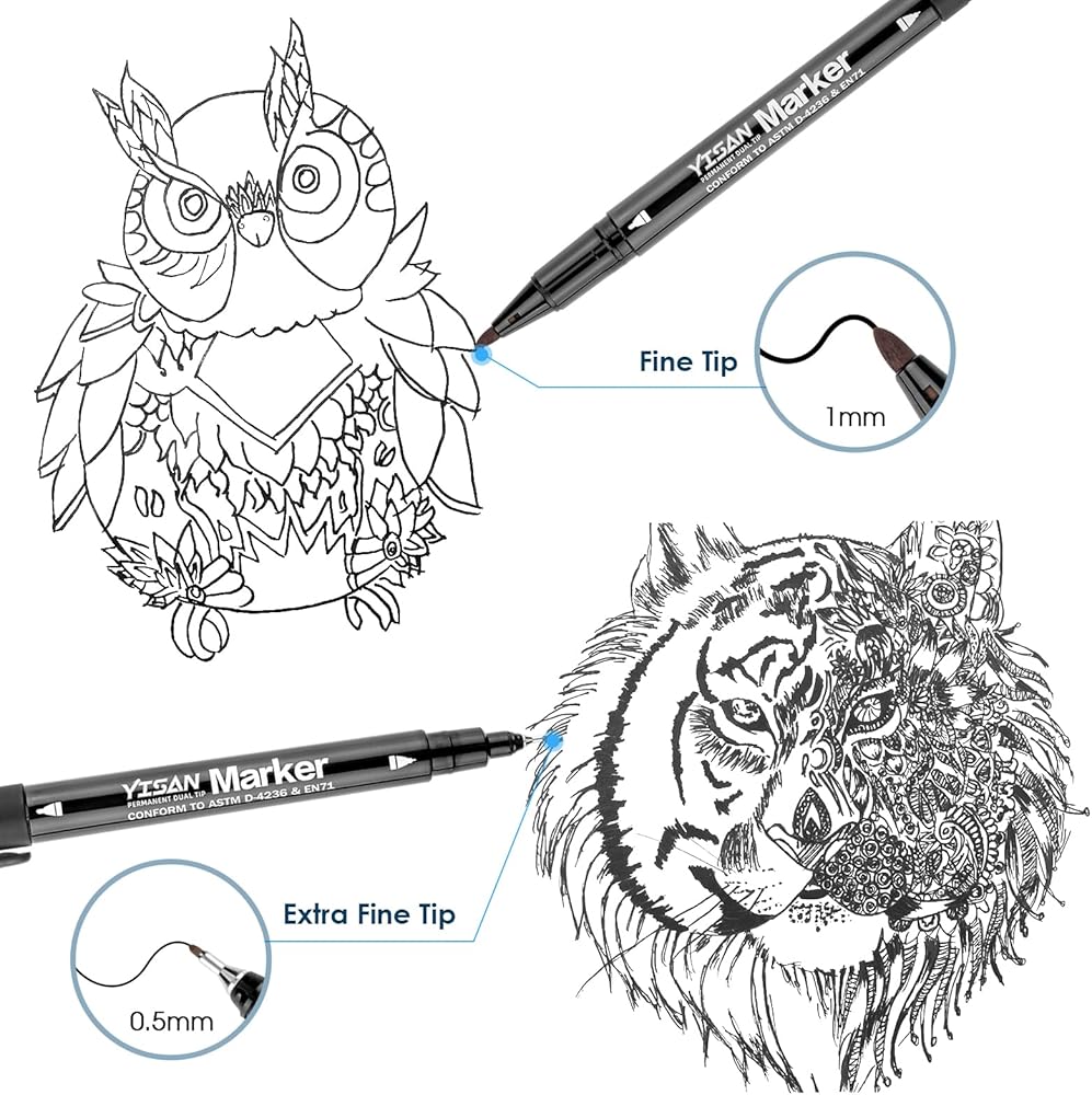 تأتي علامات Yisan بنصائح مزدوجة وتصميم مريح للحمل: نصيحة رصاصة رائعة وحقوق النقطة الدقيقة الإضافية رائعة للرسم والكتابة الدقيقة.