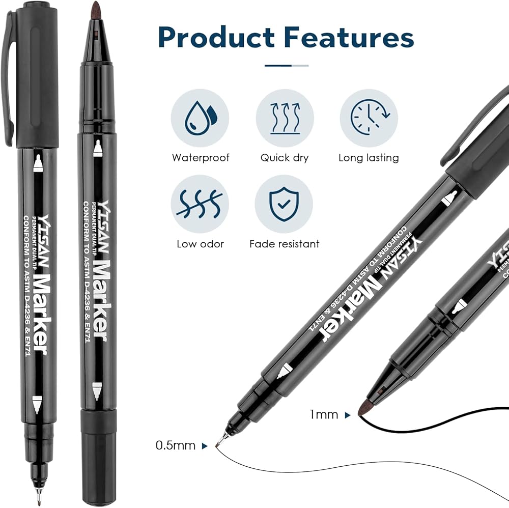 علامات Yisan سهلة وآمنة: علاماتنا الدائمة تعمل بشكل رائع دون تخطي أو مشاكل تسرب الحبر. كما أنها غير سامة وخالية من الحمض.