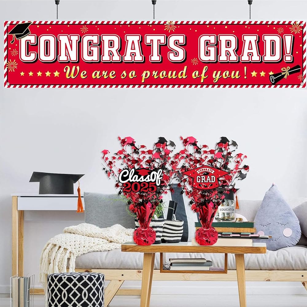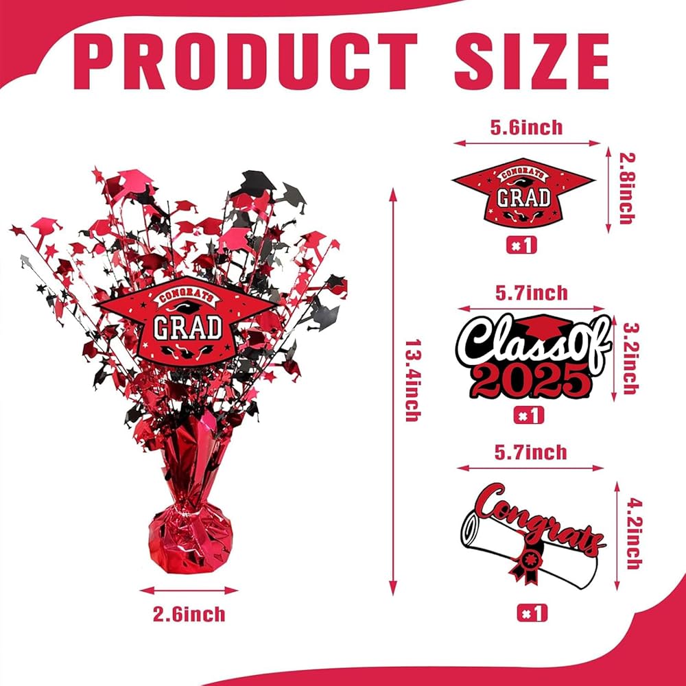 • Festive Highlights: The centerpiece of the graduation table features a classic bachelor cap and five-pointed star design elements, available in 2 colors, blue and red, and matched with 3 cards of different styles. Glittering in natural light and lights, perfect for home decoration, everyone will be attracted by these sparkling centerpieces, definitely a festive highlight, perfect home decor