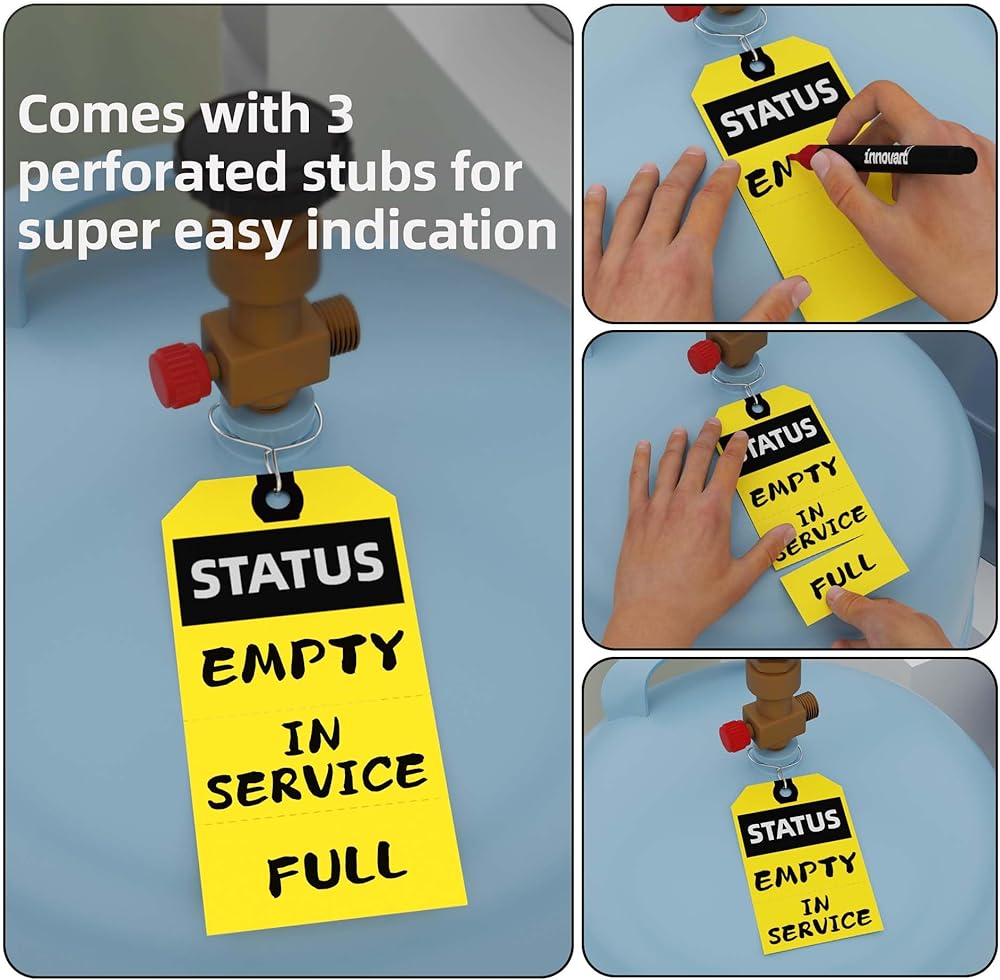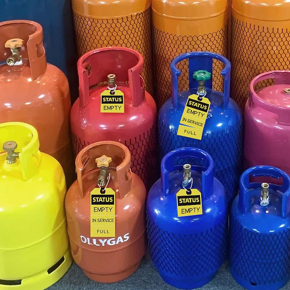 تصميم فريد-احصل على علامات حالة الأسطوانة سهلة الاستخدام لتحديد حالة أسطوانة الغاز. يأتي مع 3 كعبان مثقبة تشير إلى حالة الأسطوانة على أنها كاملة ، قيد الاستخدام ، أو فارغة. هذه العلامة مساعد ودود للوقاية من الحوادث.