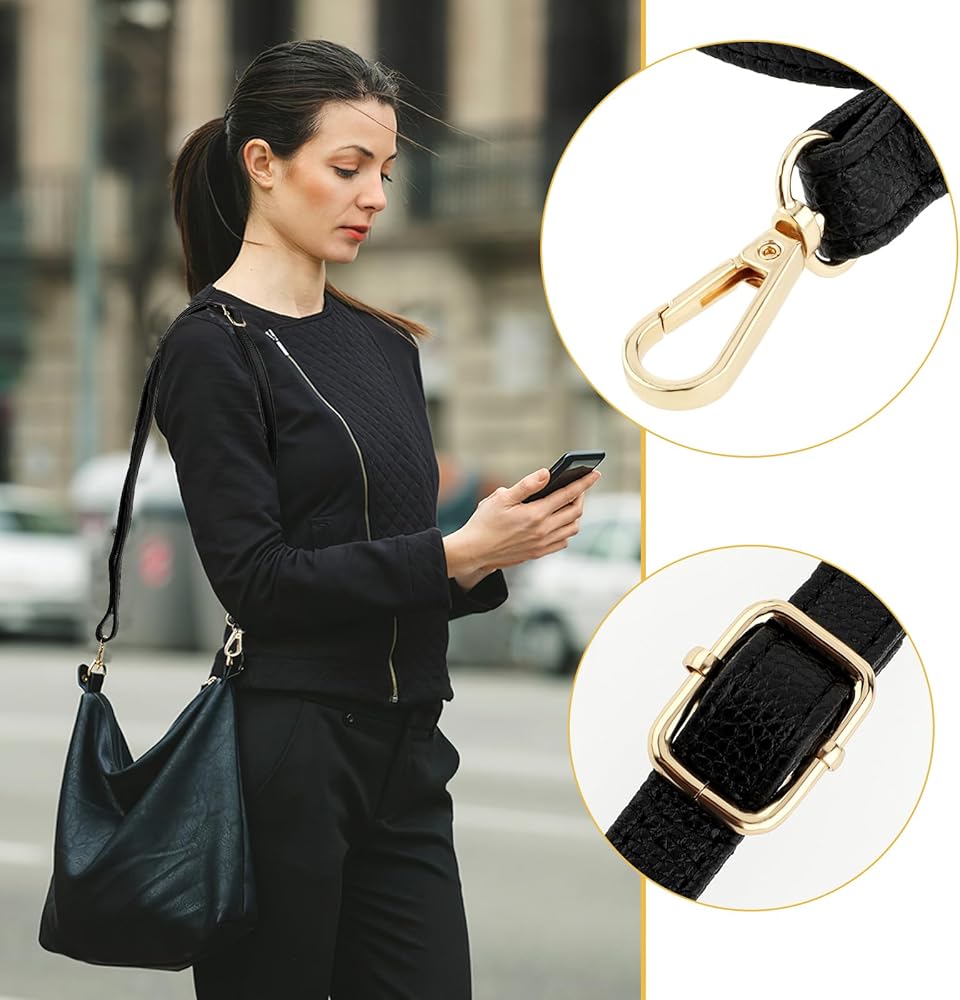Effortless Installation: The black leather crossbody strap features durable zinc alloy swivel hooks at each end, providing quick and easy attachment to your favorite bags. The hardware is designed to be lightweight yet strong, allowing for swift installation and removal without compromising security, so you can switch between looks effortlessly