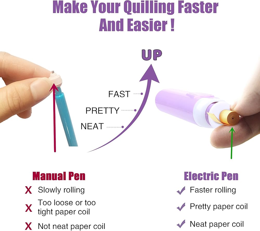 2 IN 1: 2 pen heads , No matter your quilling strips is general size or wider size , it helps you. It works with 10mm paper strips.