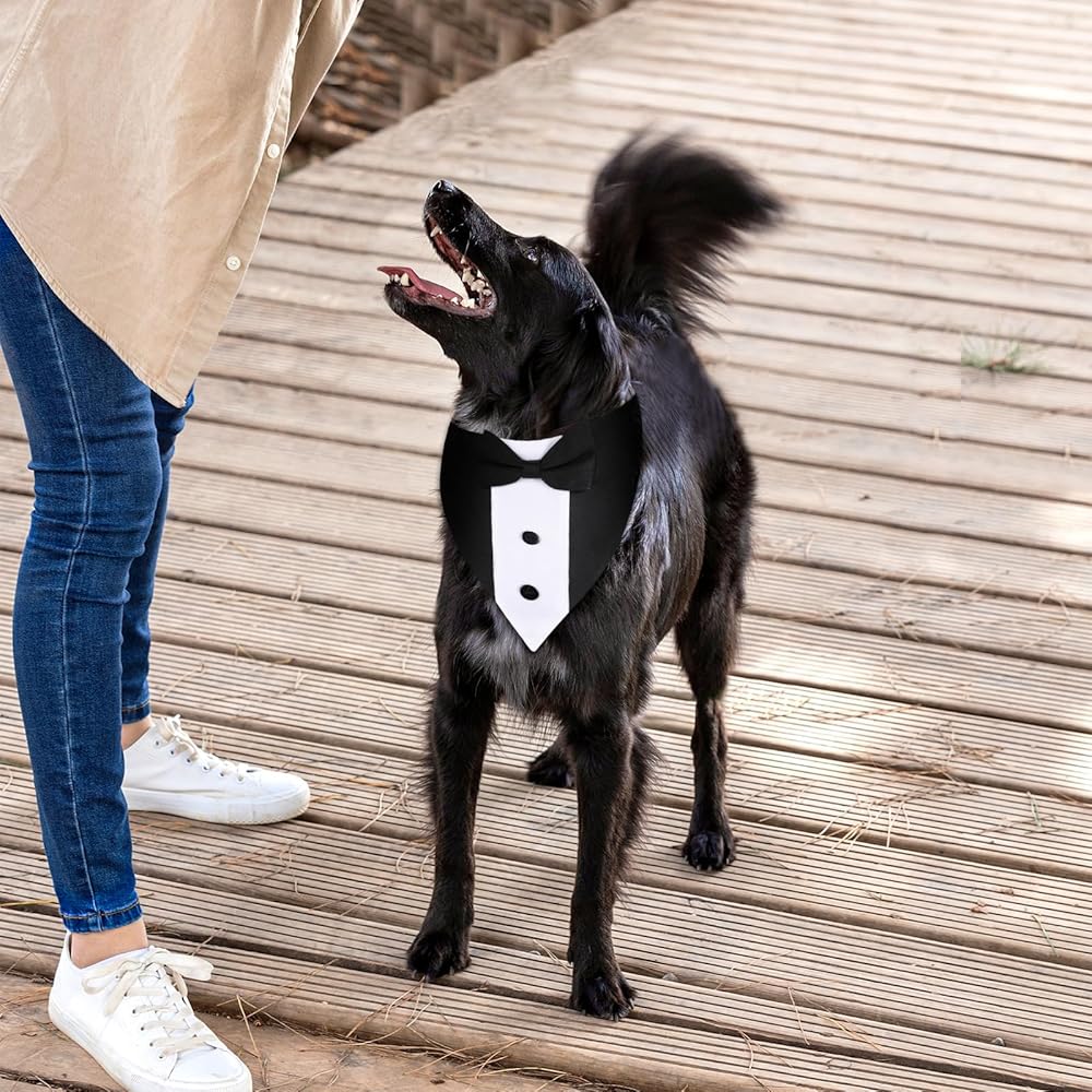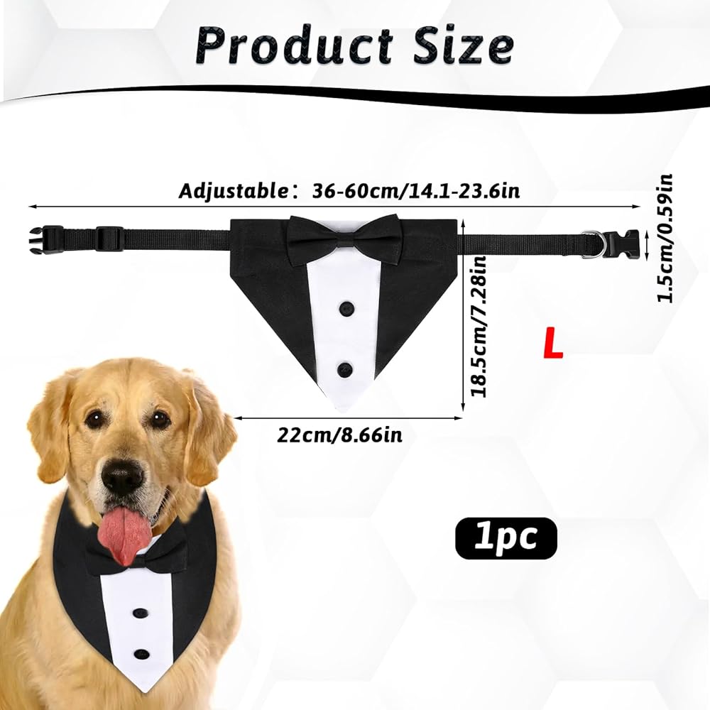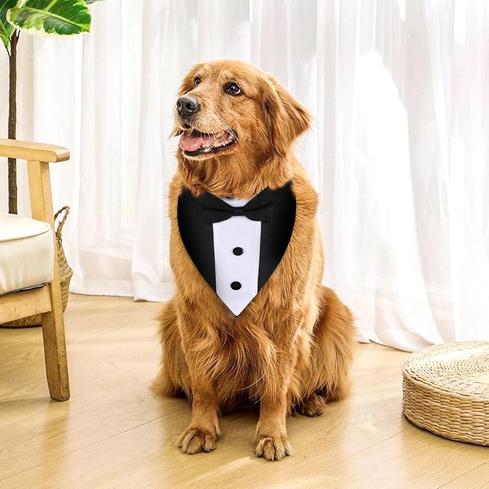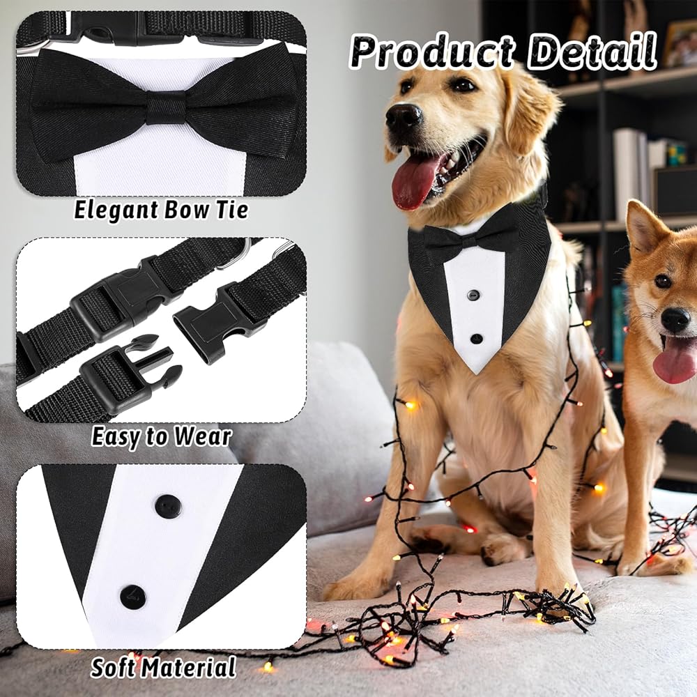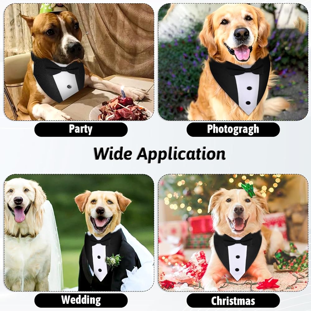Dog Tuxedo, Dog Suit Dog Wedding Outfit Bandana with Bow Tie Collars Dogs Tuxedo for Small Medium Large Pet Dogs