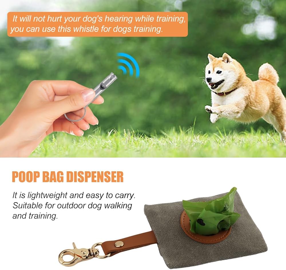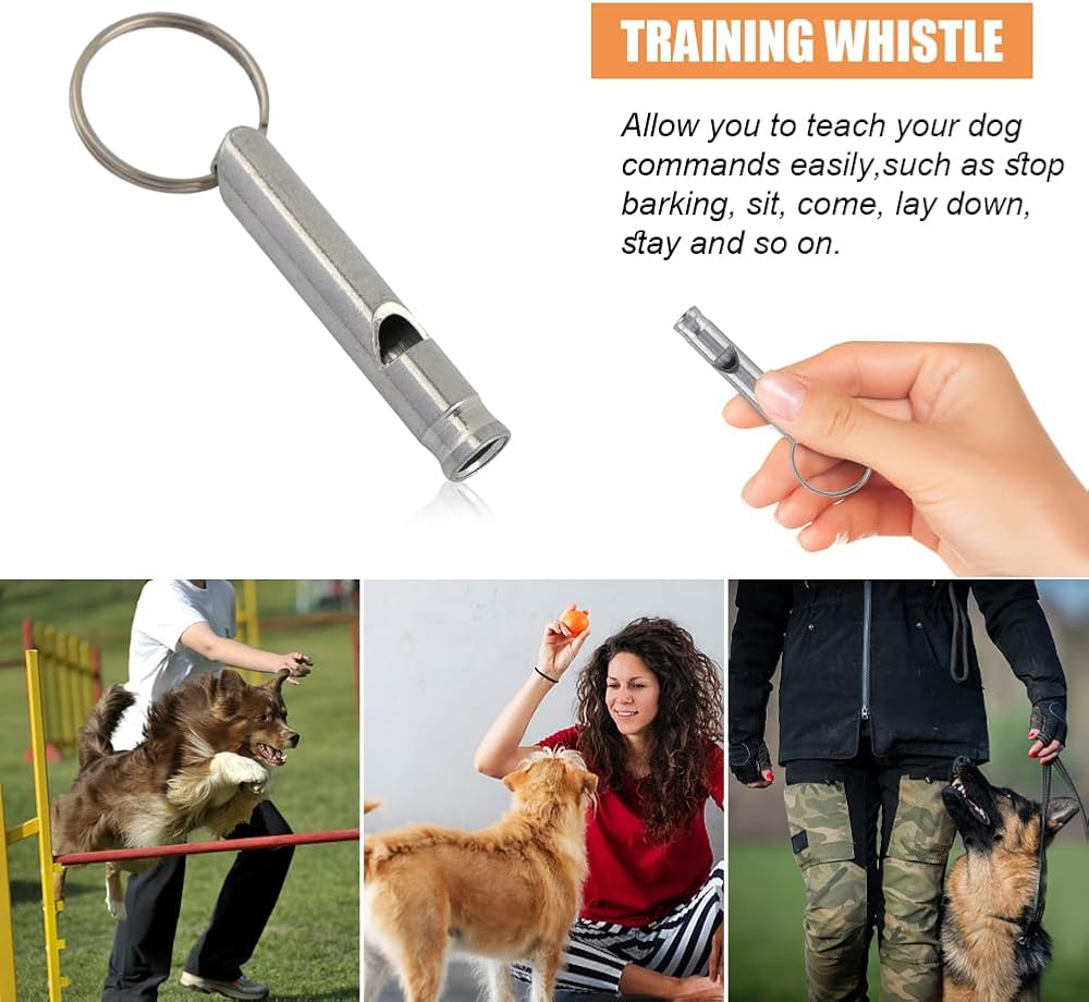• 【TRAINING WHISTLE】 Allow you to teach your dog commands easily,such as stop barking, sit, come, lay down, stay and so on. It will not hurt your dog's hearing while training, you can use this whistle for dogs training.