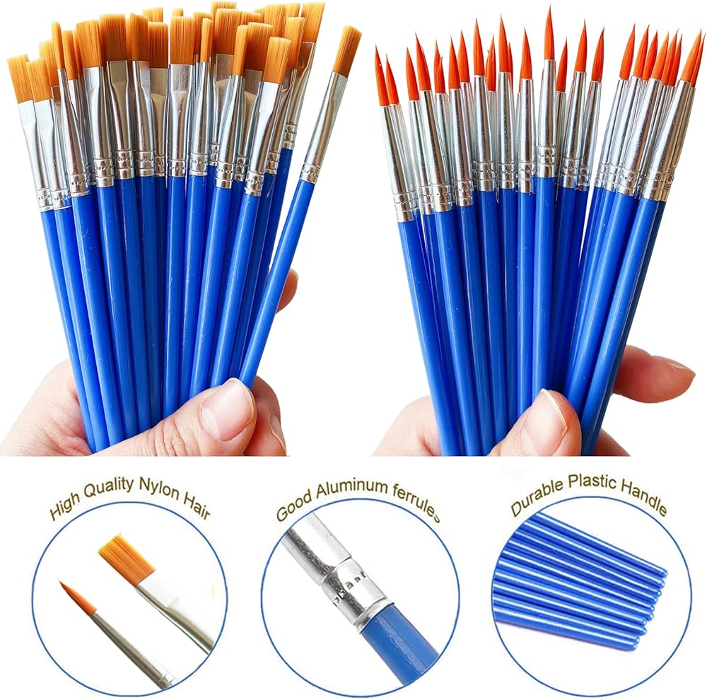 • 【GREAT VALUE PAINT BRUSHES】 : –One package contains 60 pieces Paint Brushes in blue color at a very economical price with extremely high performance-to-price ratio, You can used the Paint Brushes for school projects,teaching art at kindergarten classroom,Primary school,Middle school,High school and Training class,ect. And cheap enough to use it as one-time brush under certain circumstance.