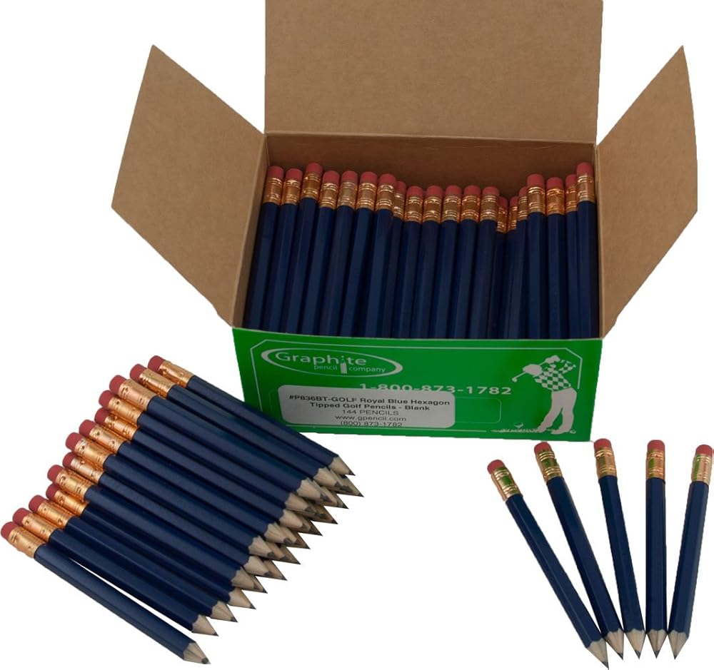 High quality golf pencils that are tipped and sharpened in the U.S.A. Strong number 2 lead draws with a dark line and does not need to be sharpened often. Quality erasers that glide over the page while easily removing unwanted marks. The pencils are test and approved non-toxic. These pencils are sure to please and are great for score keeping, pews giveaways and much more. Each box contains 144 pencils.