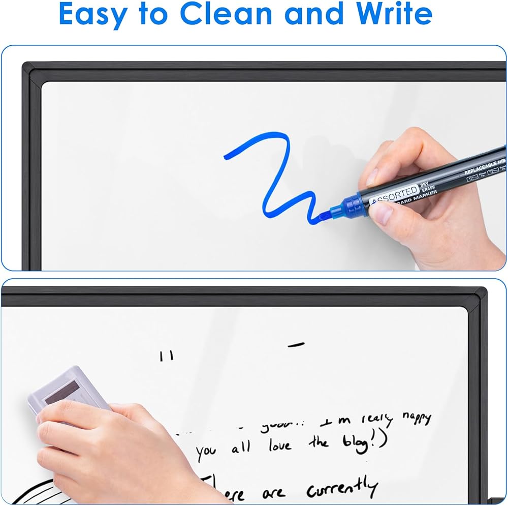 يوفر السهل على الوجهين وسهلين: يوفر سطحًا على الوجهين للاستخدام متعدد الاستخدامات. يمكنك الكتابة على جانب واحد وعرض المخططات أو الرسوم البيانية على الجانب الآخر. يتميز بمواد زجاجية مضادة للانحناء مع خاصية احتكاك منخفضة ، مما يضمن أن اللوحة مقاومة للبقع ، ويمكن محوها بسهولة ، ومقاومة للخدش ، وسلسة للكتابة.