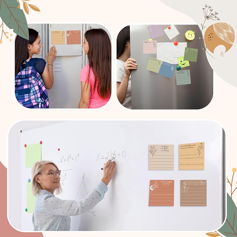 Adding an aesthetically pleasing touch with Boho color scheme, these positive affirmation sticky notes blend seamlessly with any workspace or home decor. The tranquil hues add a calming effect, ideal for creating a peaceful and positive environment