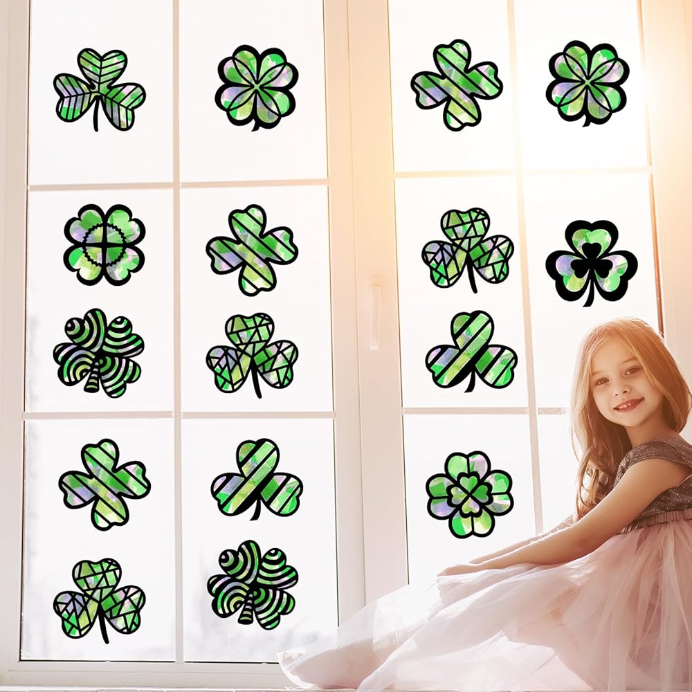 • 【St Patrick's Day Design】Our St Patrick's Day-themed suncatchers craft kit is designed to bring joy and creativity to your crafting experience. This easy and simple Saint Patrick DIY paper suncatcher kit contains all the materials you need to design and make shamrock shaped suncatchers, allowing you to unleash your artistic side and create beautiful decorations that bring a burst of color and light to any space.