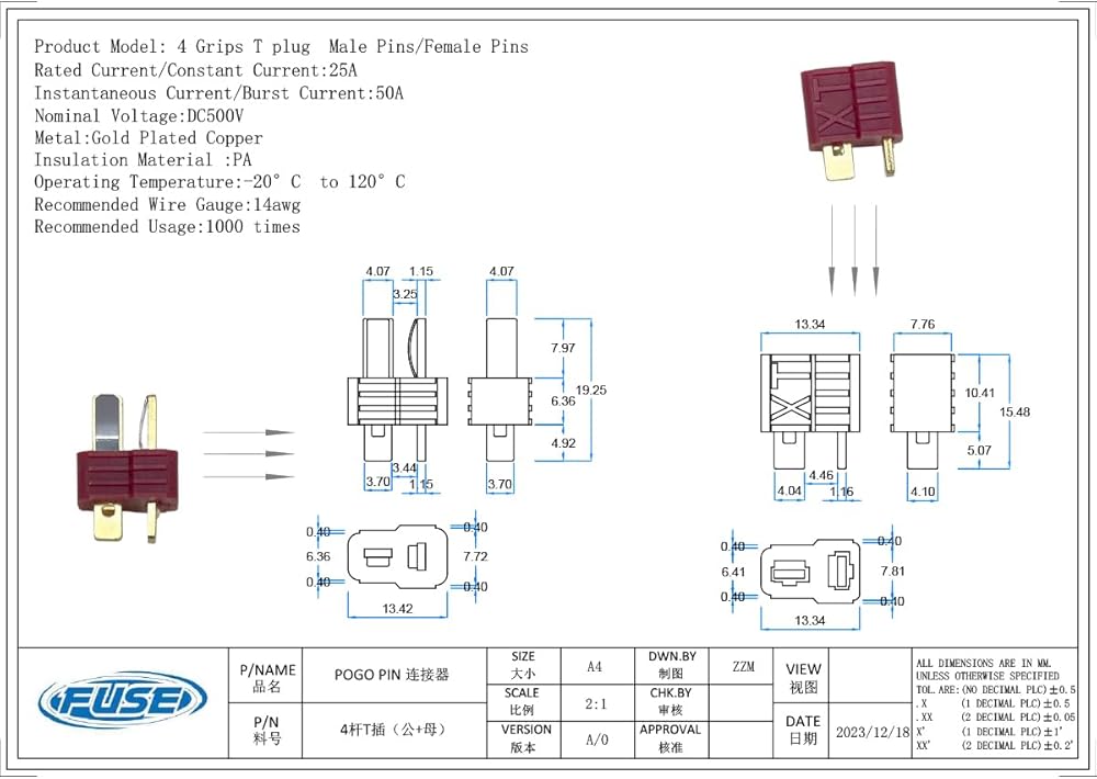 - 4 GRIPS ANTIS Ultra Deans يتم استخدام موصل الإناث لبطارية RC وأجزاء RC الأخرى.