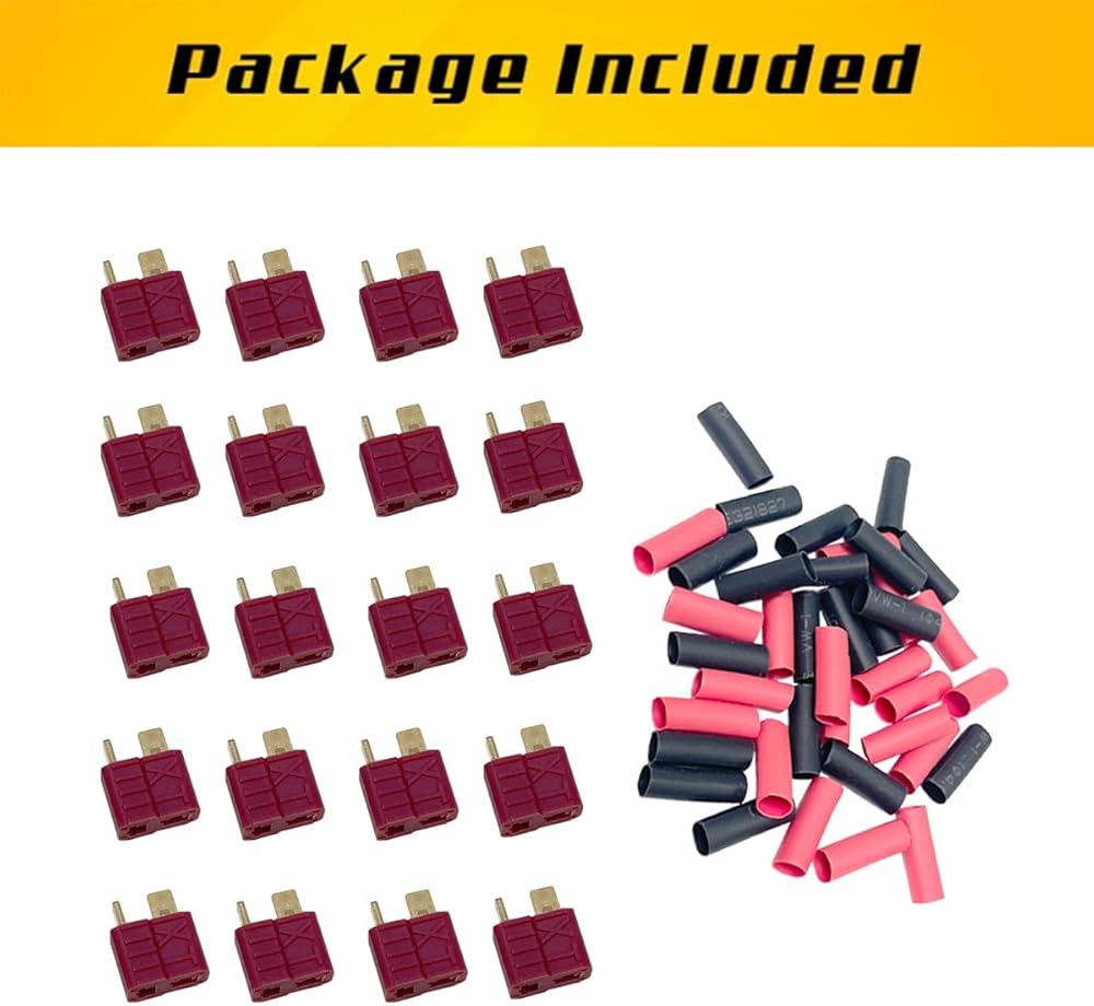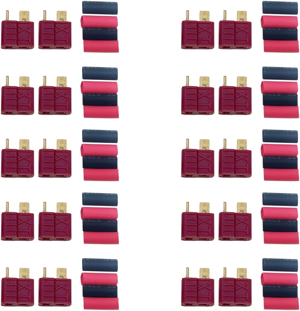 - 20pcs 10 أزواج 4 أجهزة antis ultra deans t-plug الموصلات الذكور والإناث مع أنابيب تقلص لحزمة بطارية RC مزدوجة شاحن ESC وغيرها من الأجزاء الكهربائية.