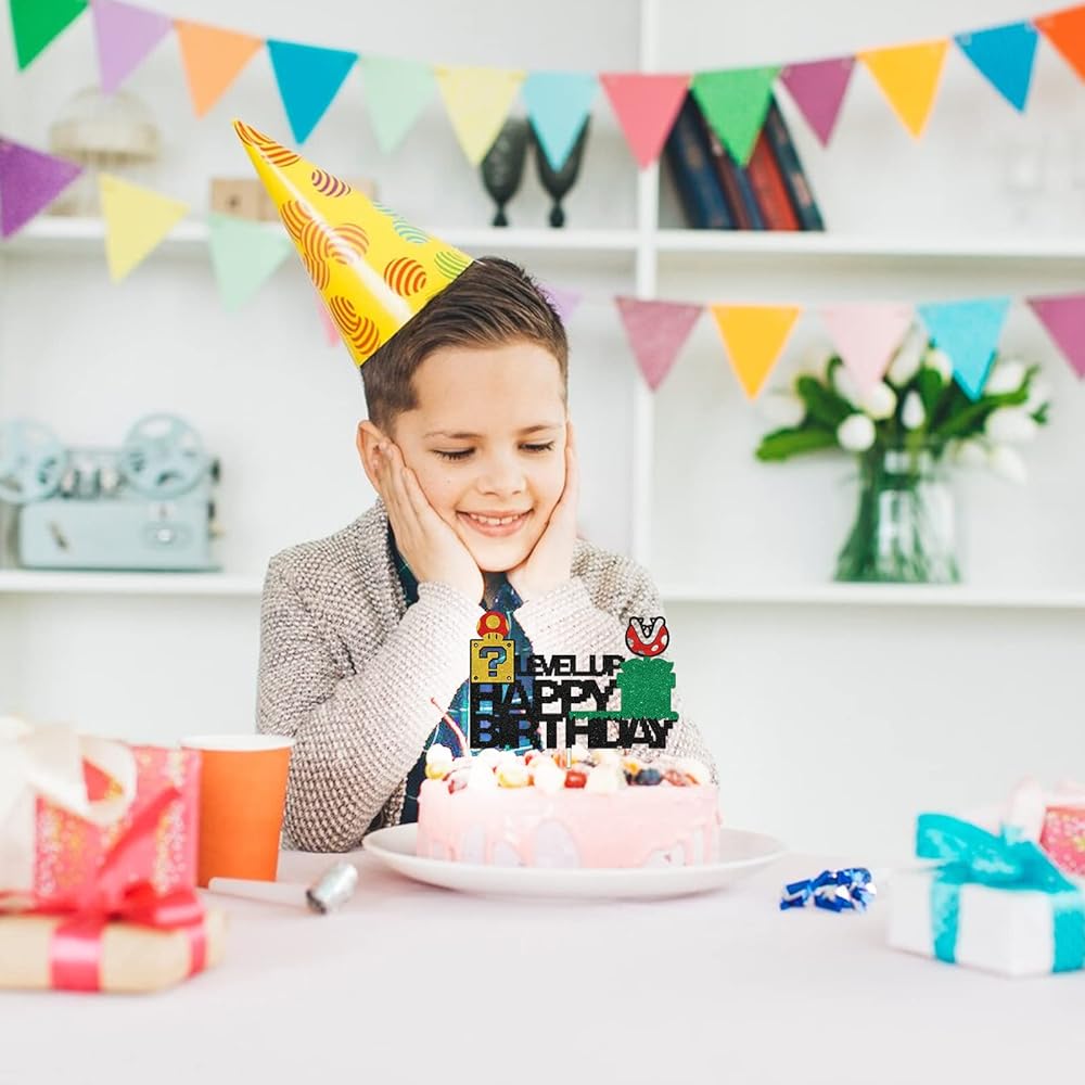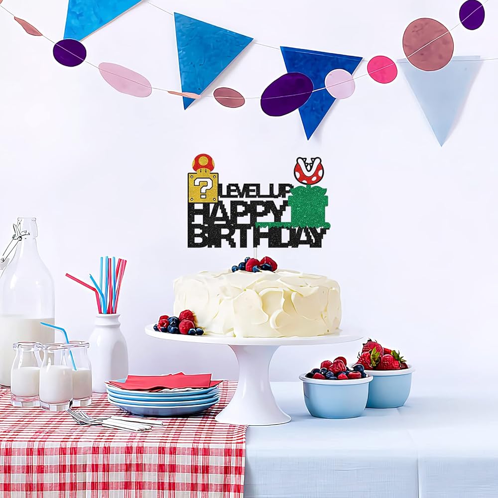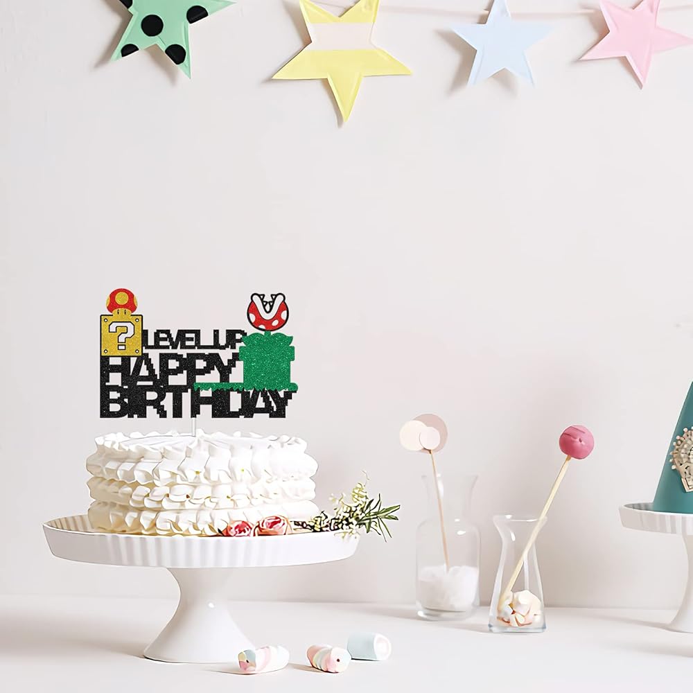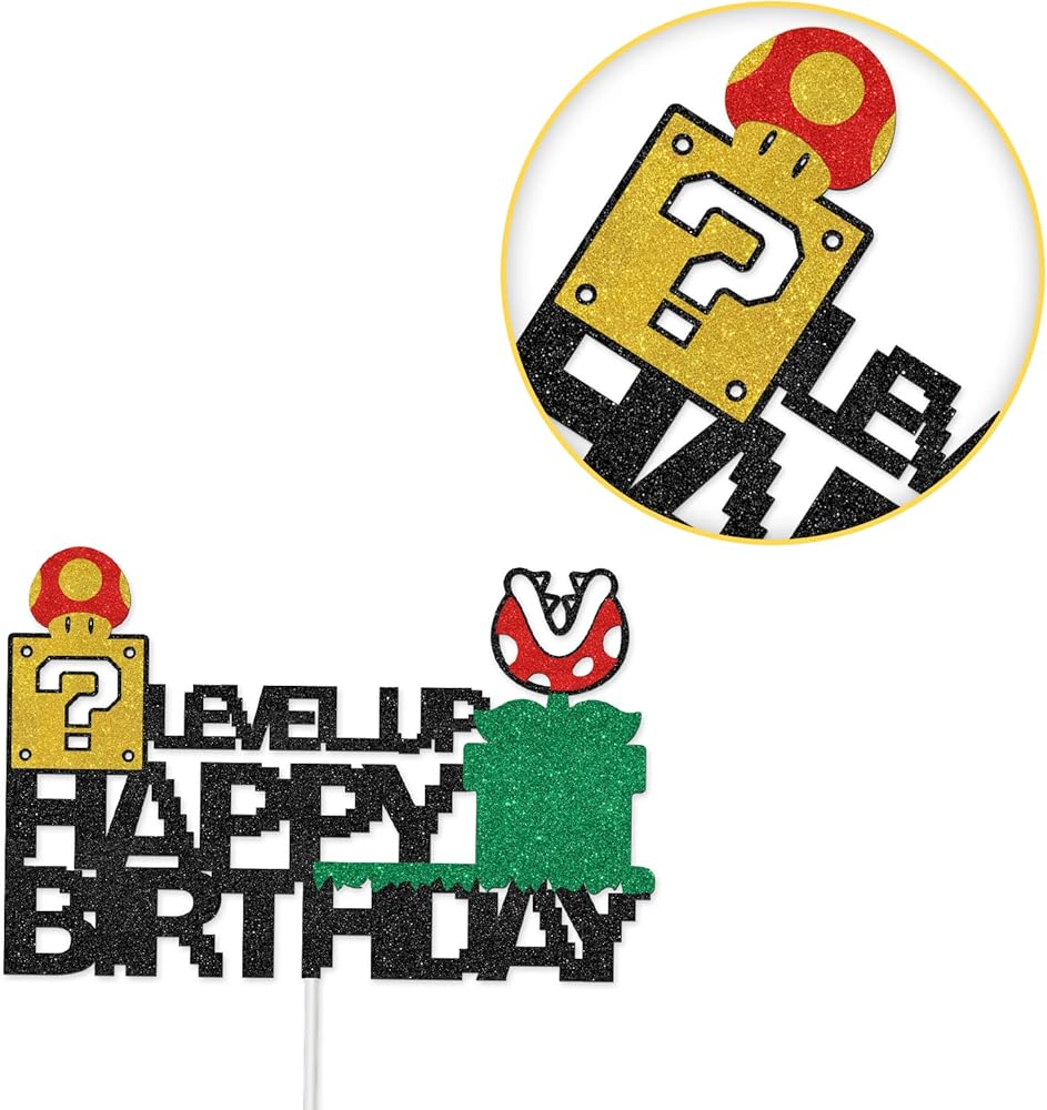 🎈This cake topper made of high quality glitter card stock and food grade sticks. These two materials will not harm health and pollute the environment, reusable.